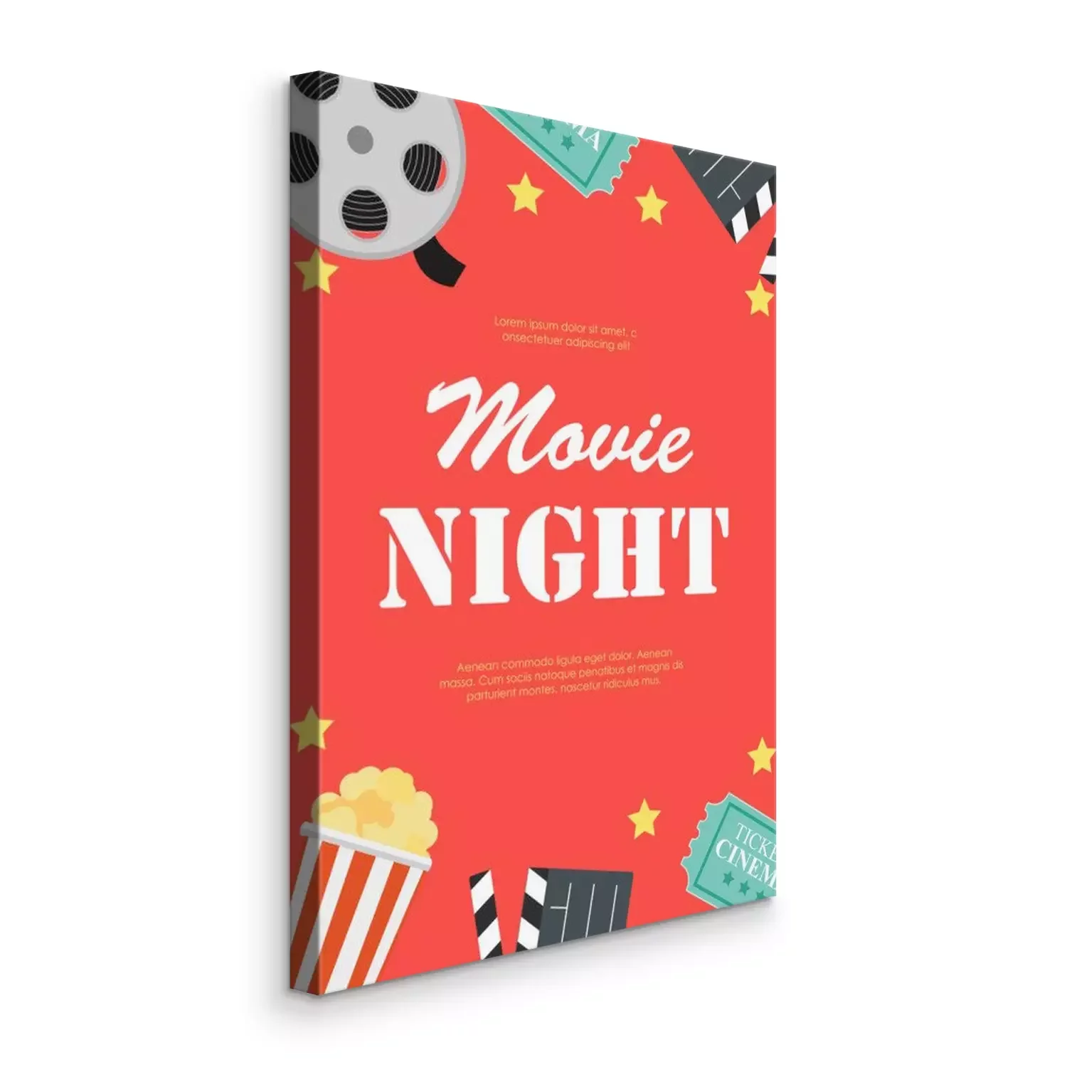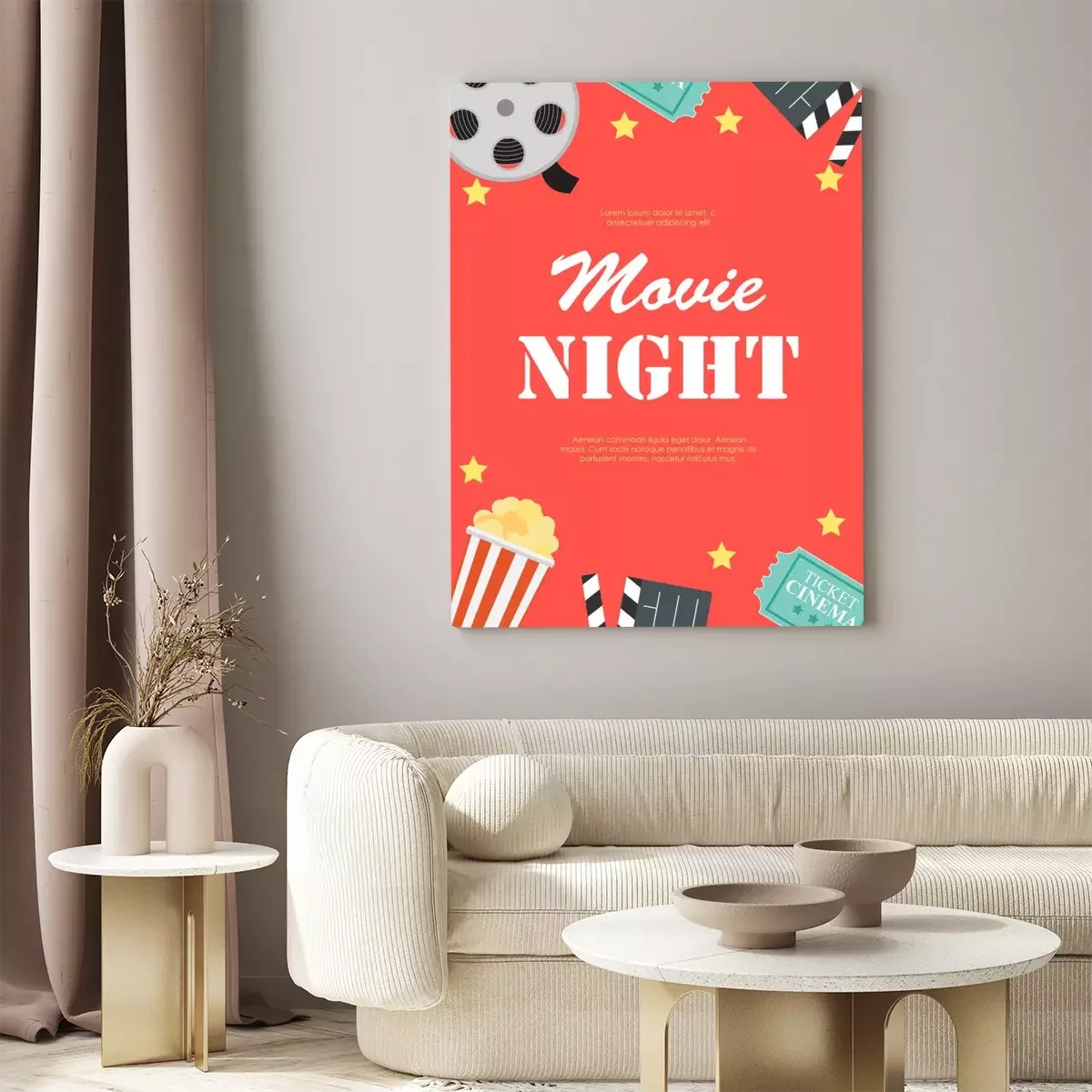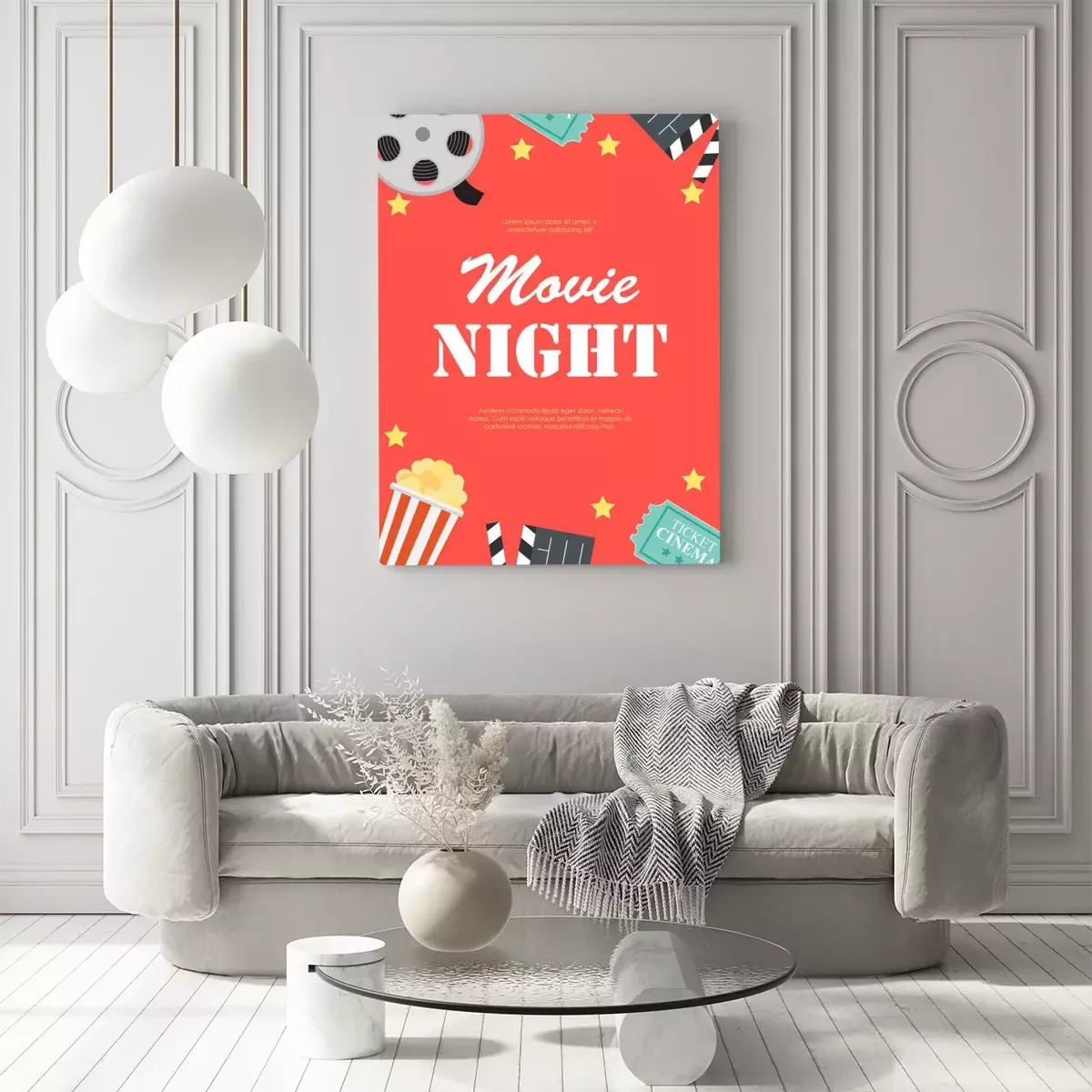 Abstract Movie Night Cinema Flat Background with Reel, Old Style Ticket, Big Pop Corn and Clapper Symbol Icons. Vector Illustration