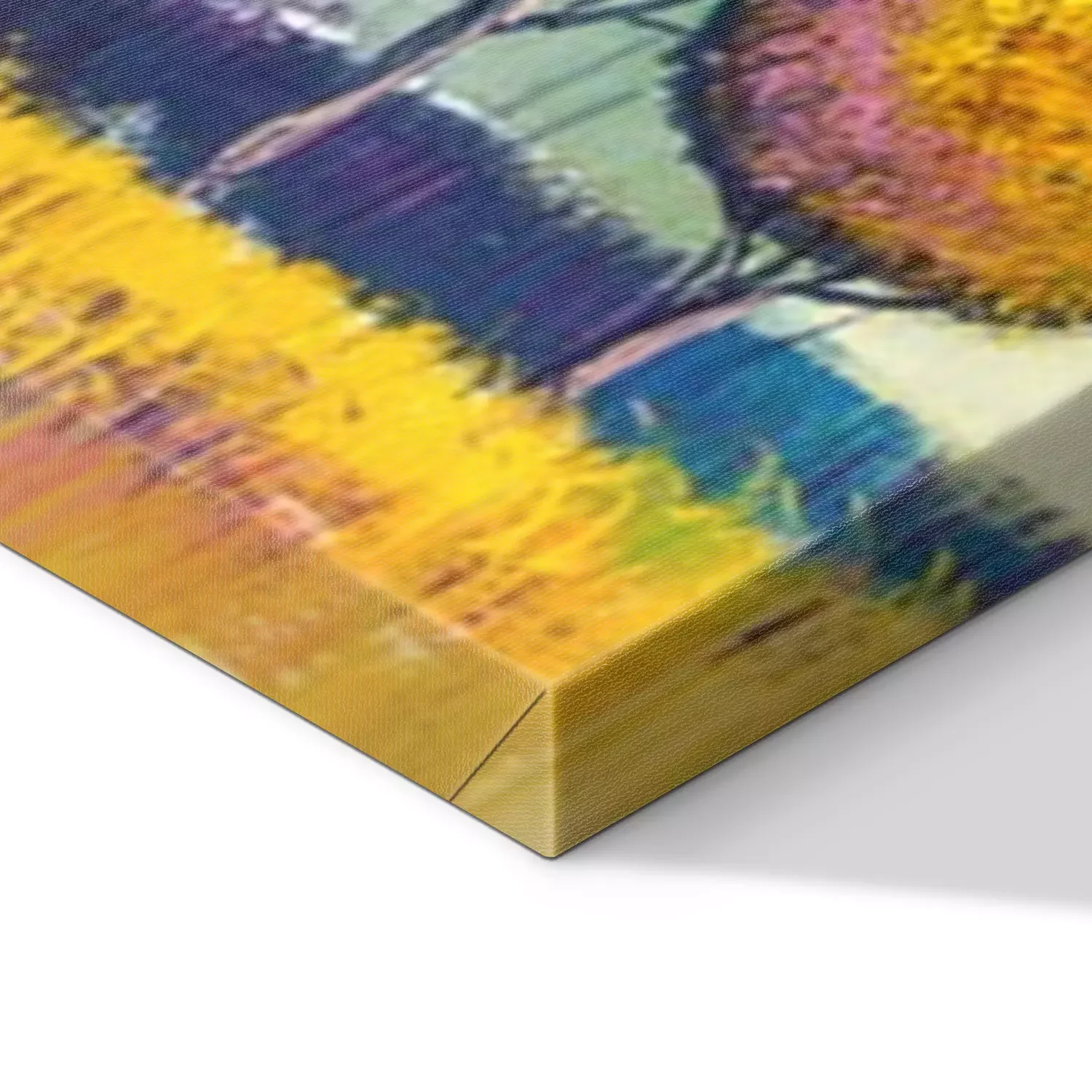 Das Motiv wird auf eine qualitativ hochwertige Leinwand gedruckt, die auf einen Blendrahmen gezogen wird. Da der Aufdruck die Seitenkanten bedeckt, muss das Bild nicht zusätzlich eingerahmt werden. Wir empfehlen außerdem Kompositionen aus mehreren Bildern, die ein harmonisches Ganzes bilden.