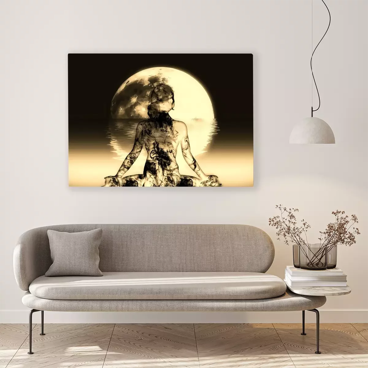 Bild: Abstrakte Frau meditiert im Mondlicht