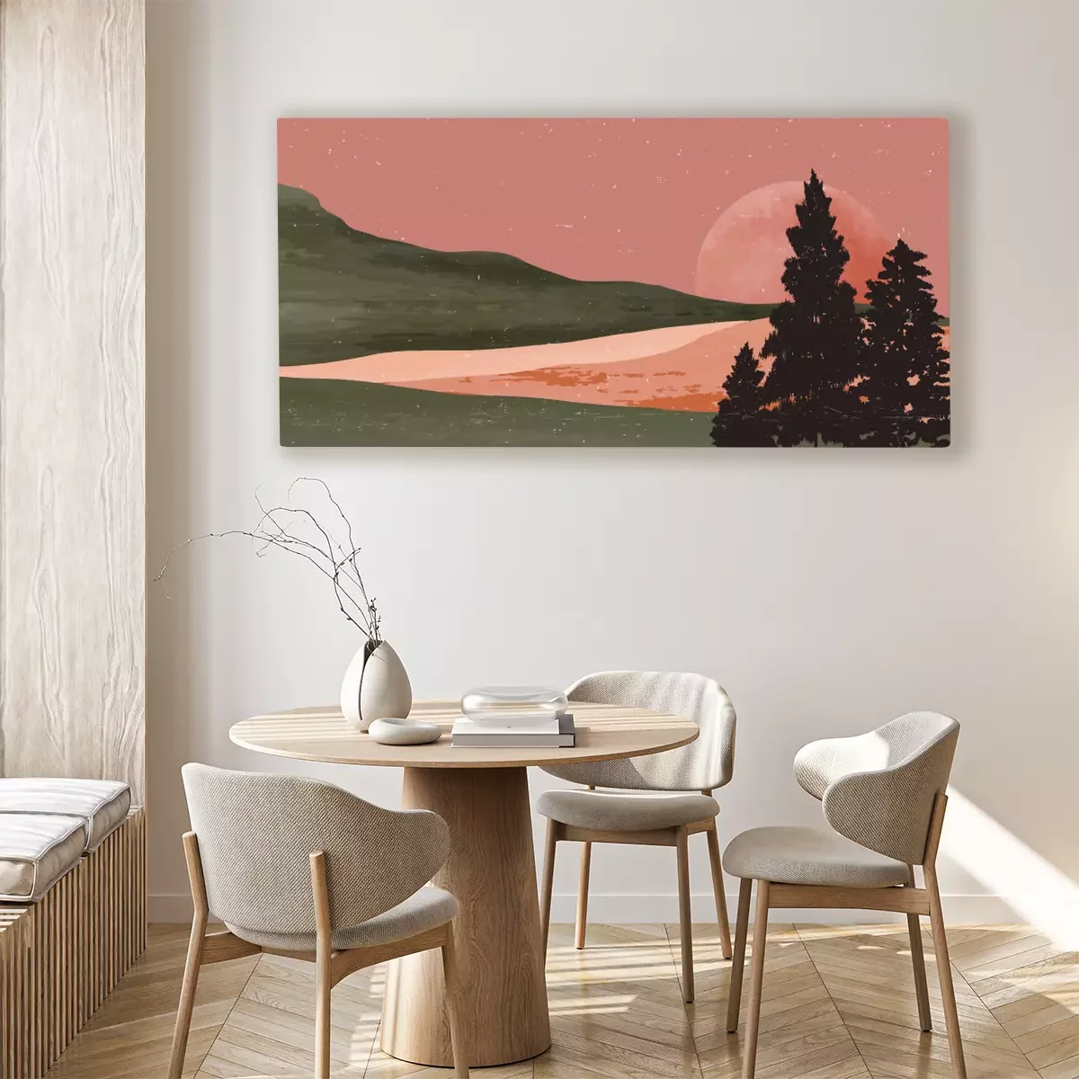 Bild Abstrakte Landschaft mit Bergen auf rosa Hintergrund