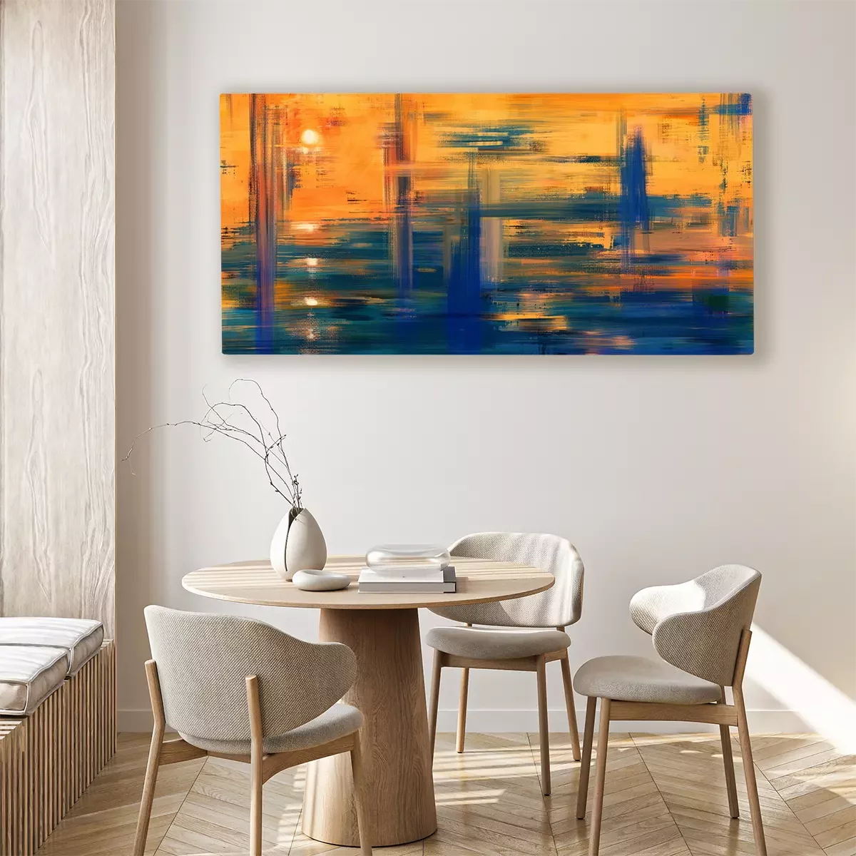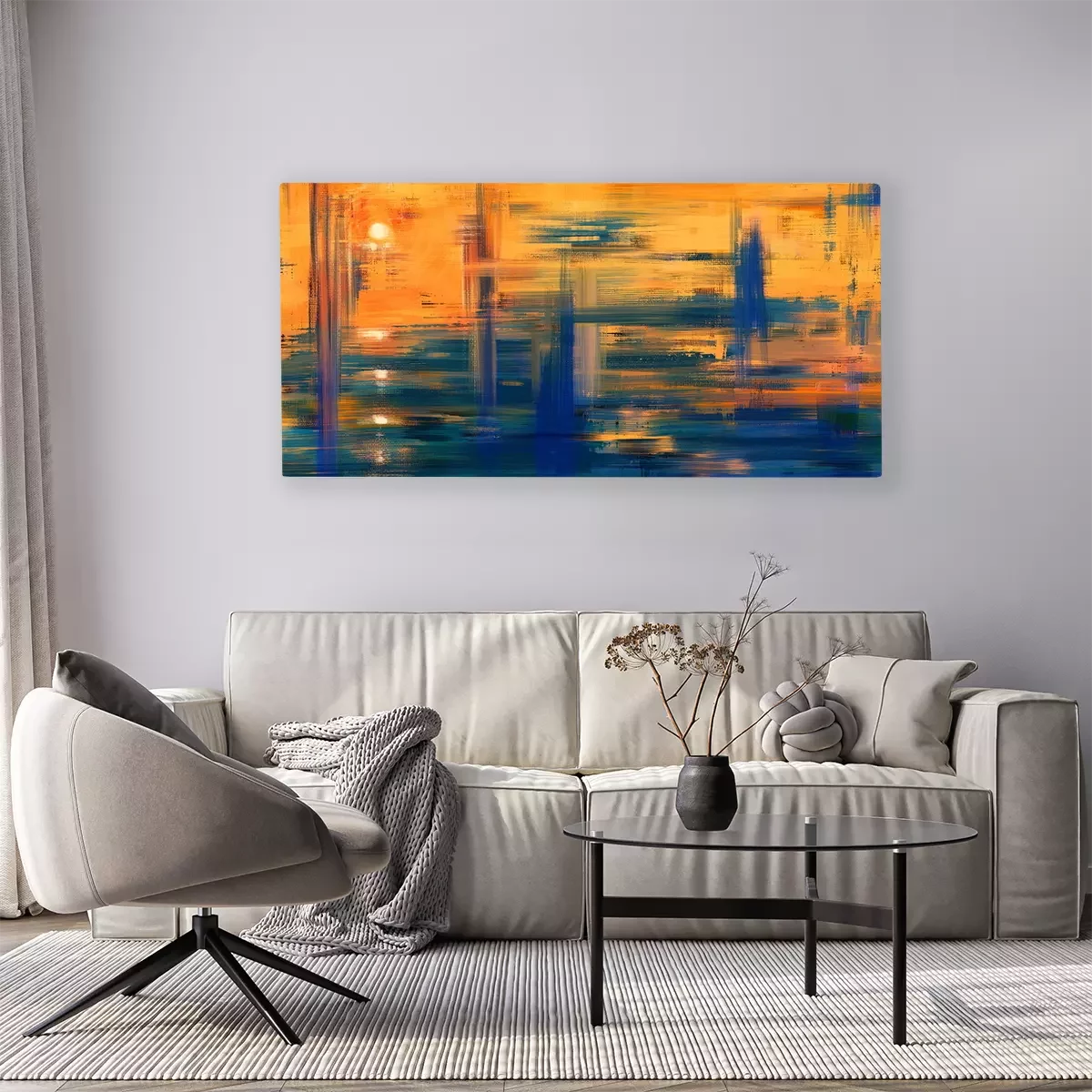 Das Motiv wird auf eine qualitativ hochwertige Leinwand gedruckt, die auf einen Blendrahmen gezogen wird. Da der Aufdruck die Seitenkanten bedeckt, muss das Bild nicht zusätzlich eingerahmt werden. Wir empfehlen außerdem Kompositionen aus mehreren Bildern, die ein harmonisches Ganzes bilden.