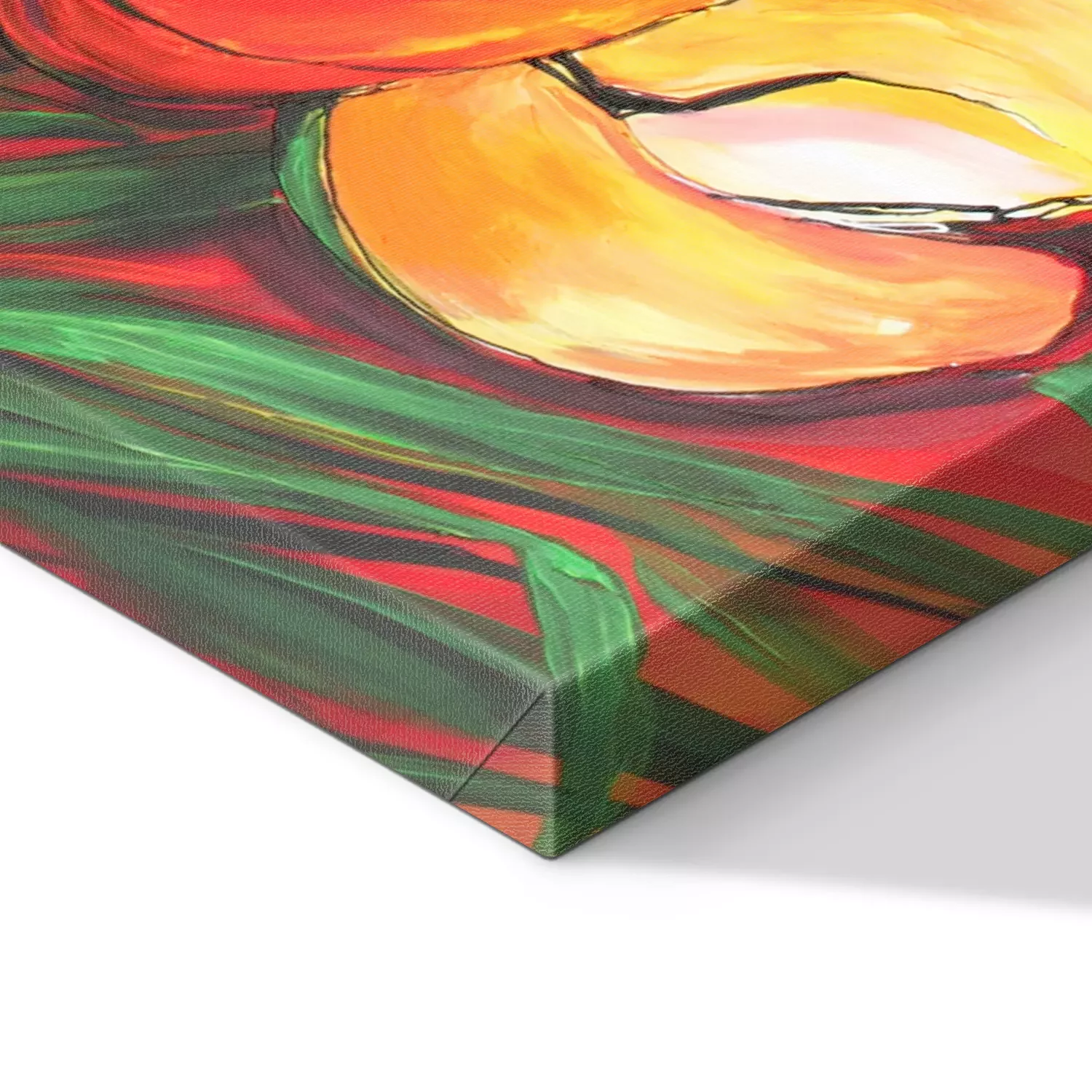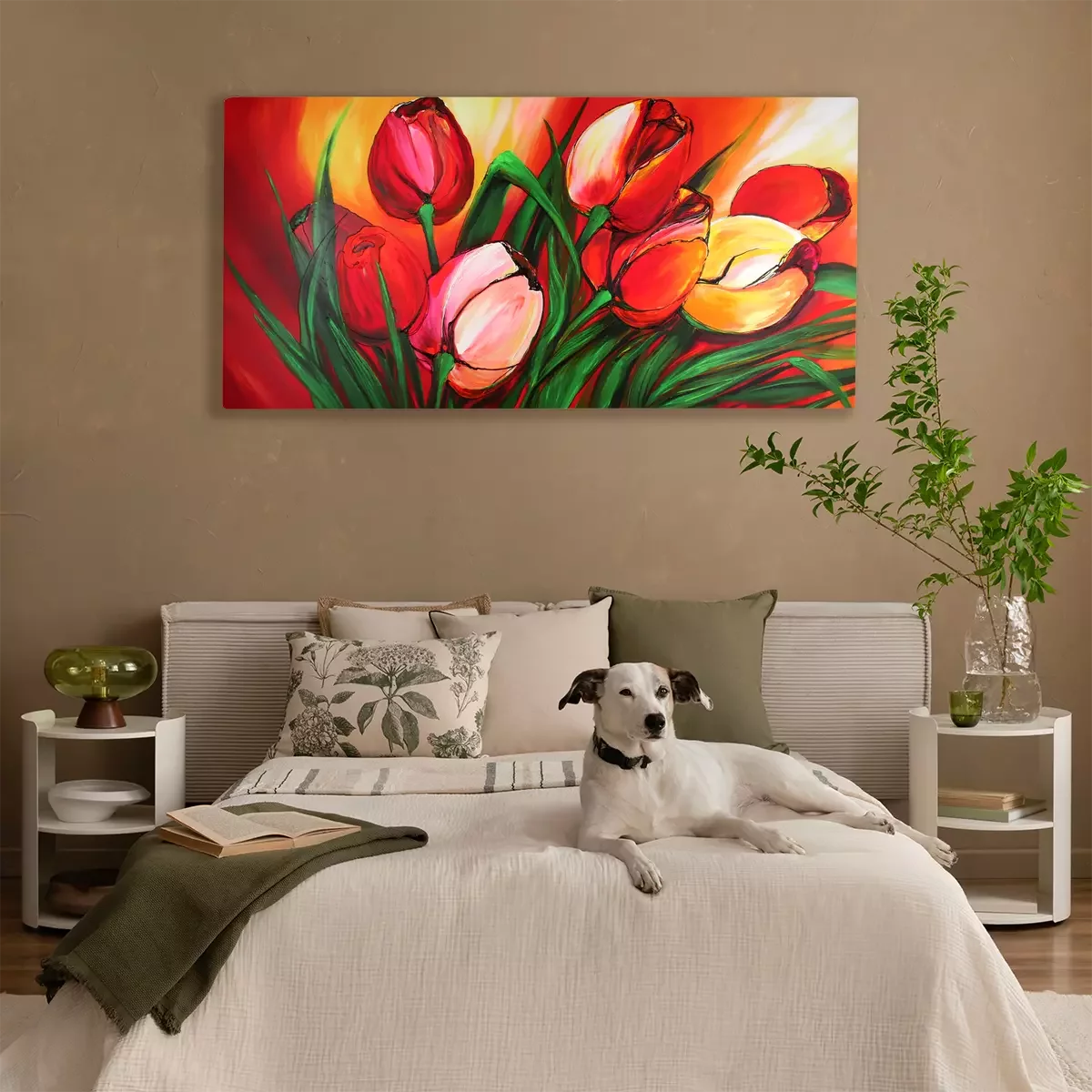 Abstrakte rote und gelbe tulpen mit grünen blättern