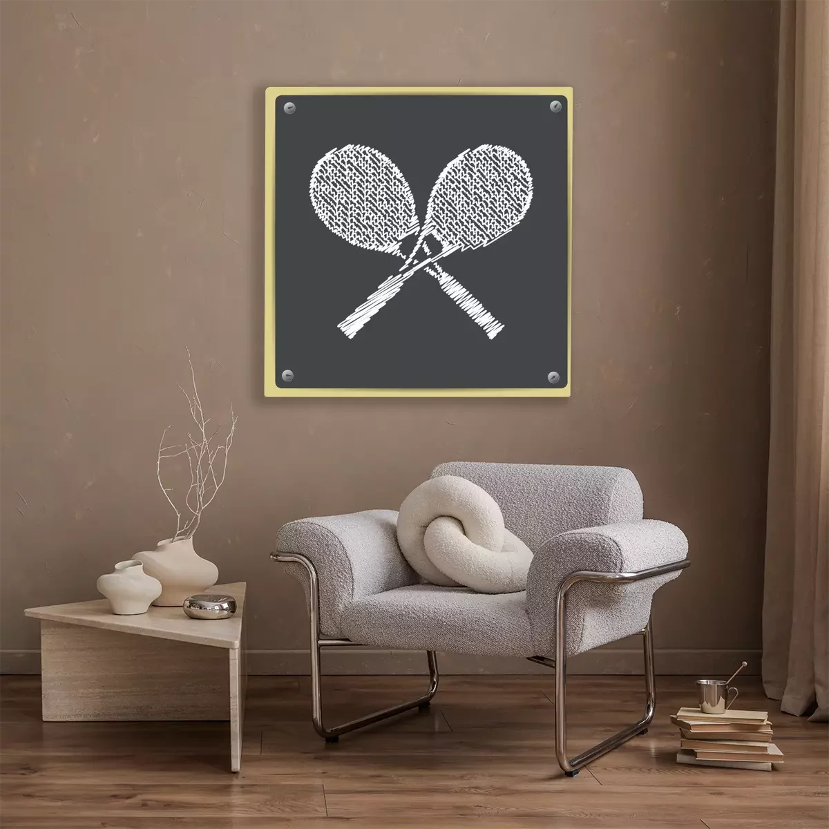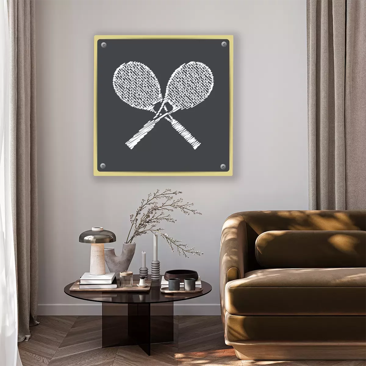 Tennisschläger auf kariertem Hintergrund