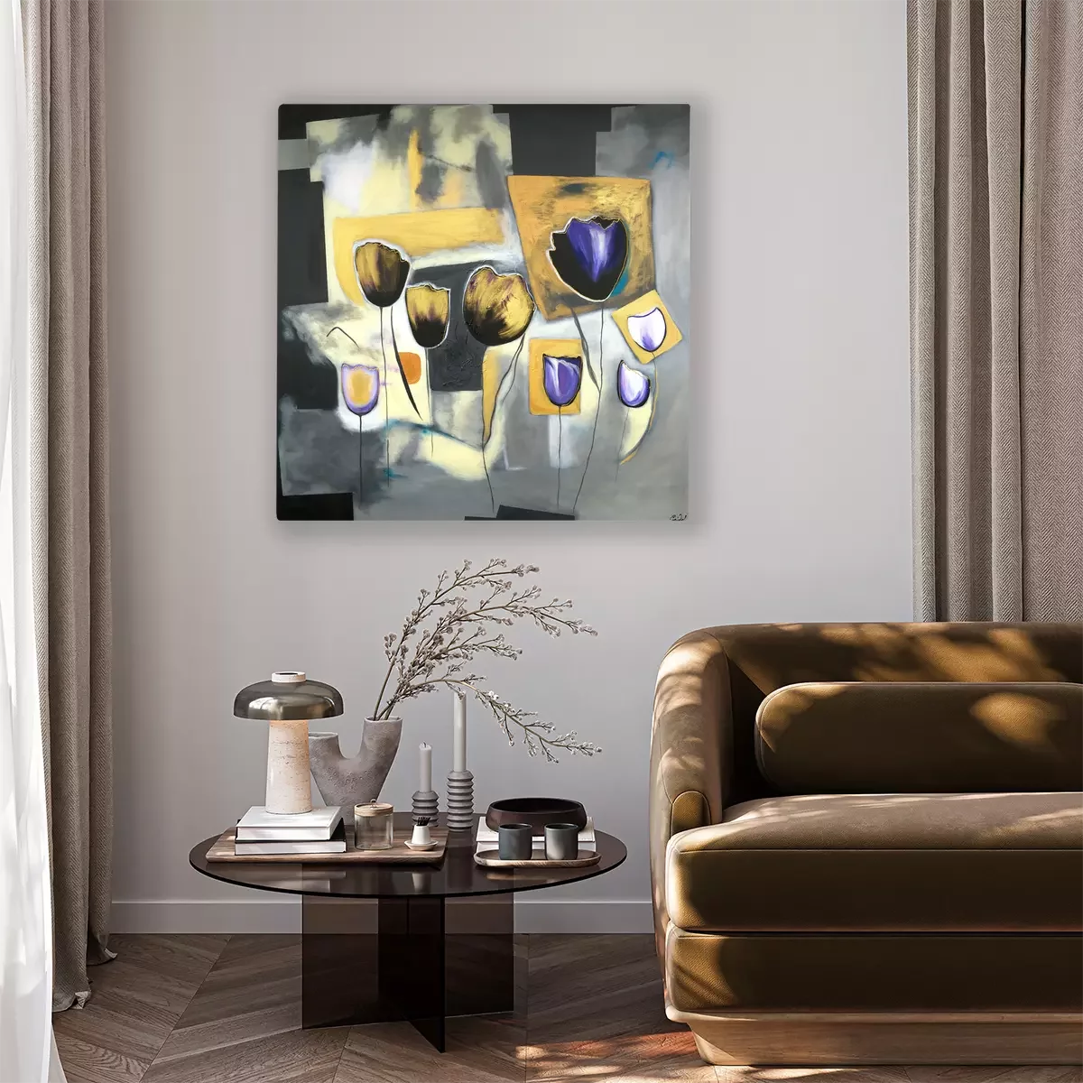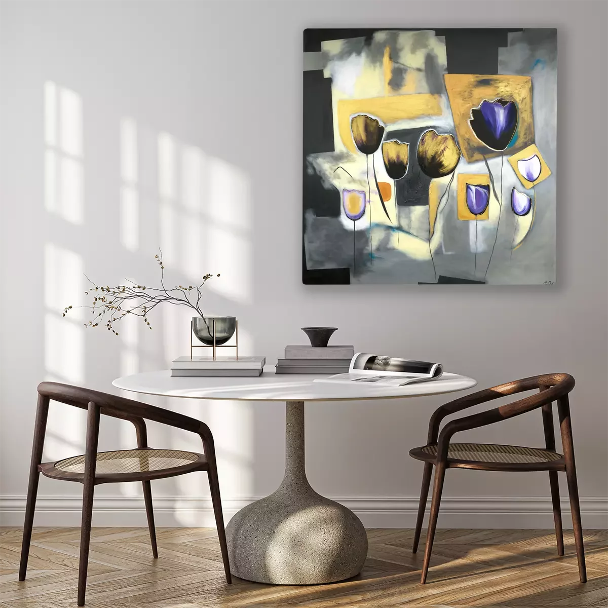 Abstrakte tulpen auf geometrischem grauem hintergrund