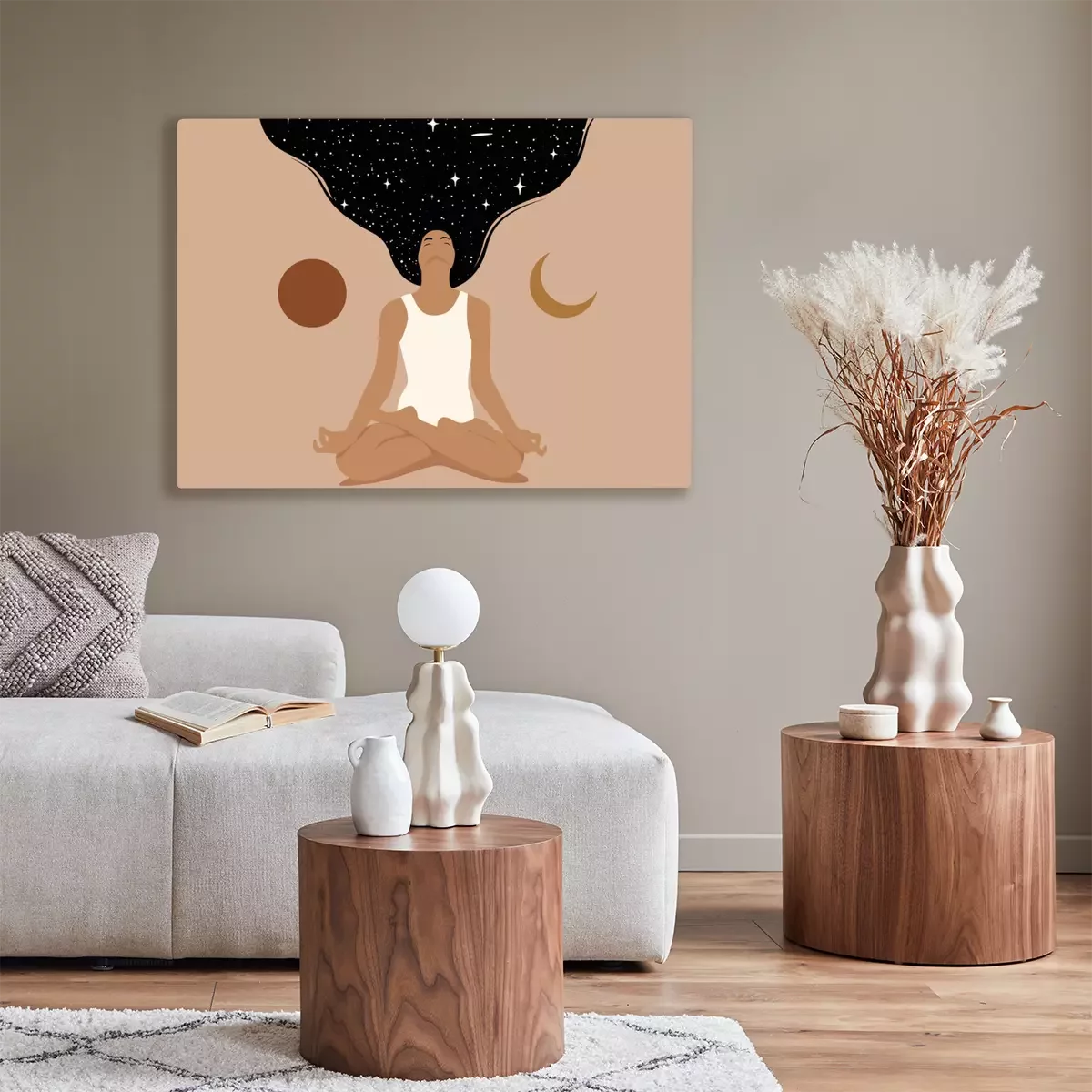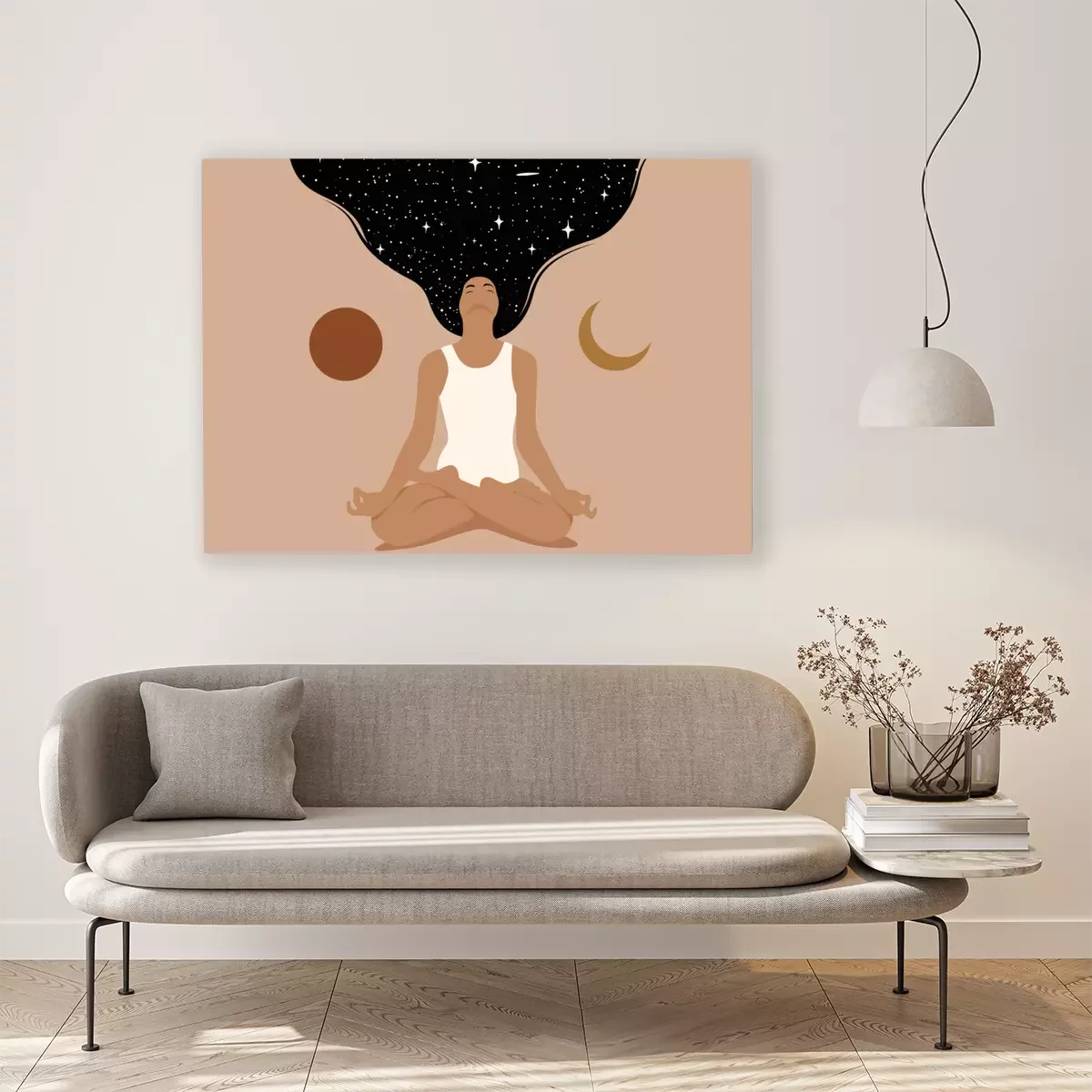 Abstraktes Konzept Yoga auf dem Mond