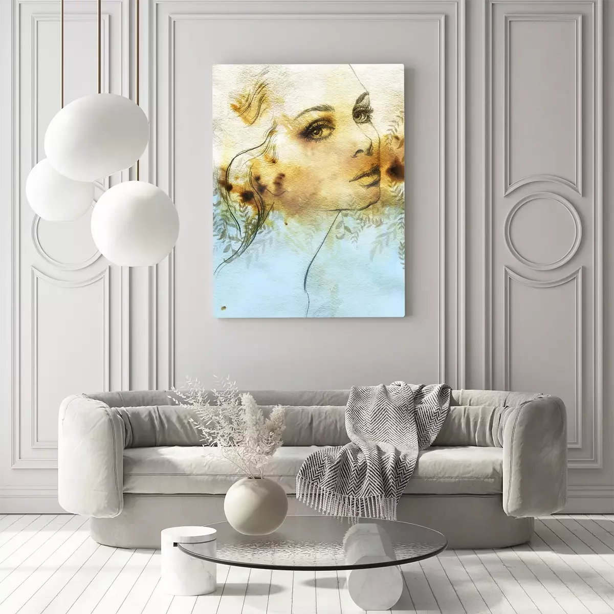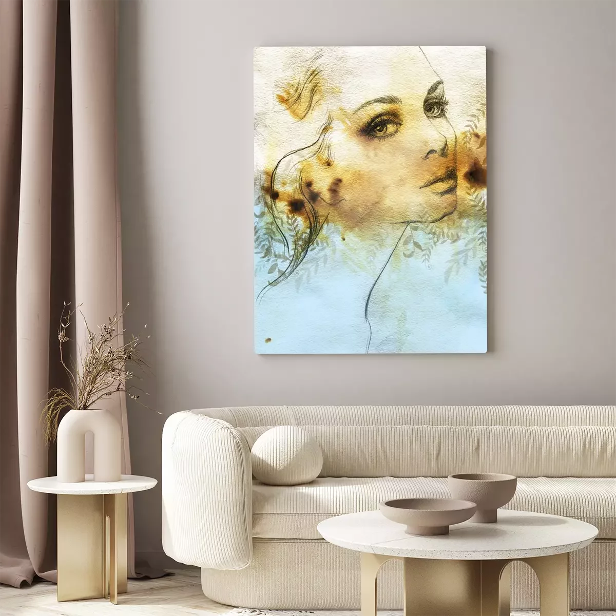 Schöne Frau Gesicht. Abstraktes Aquarell. Art und Weiseabbildung