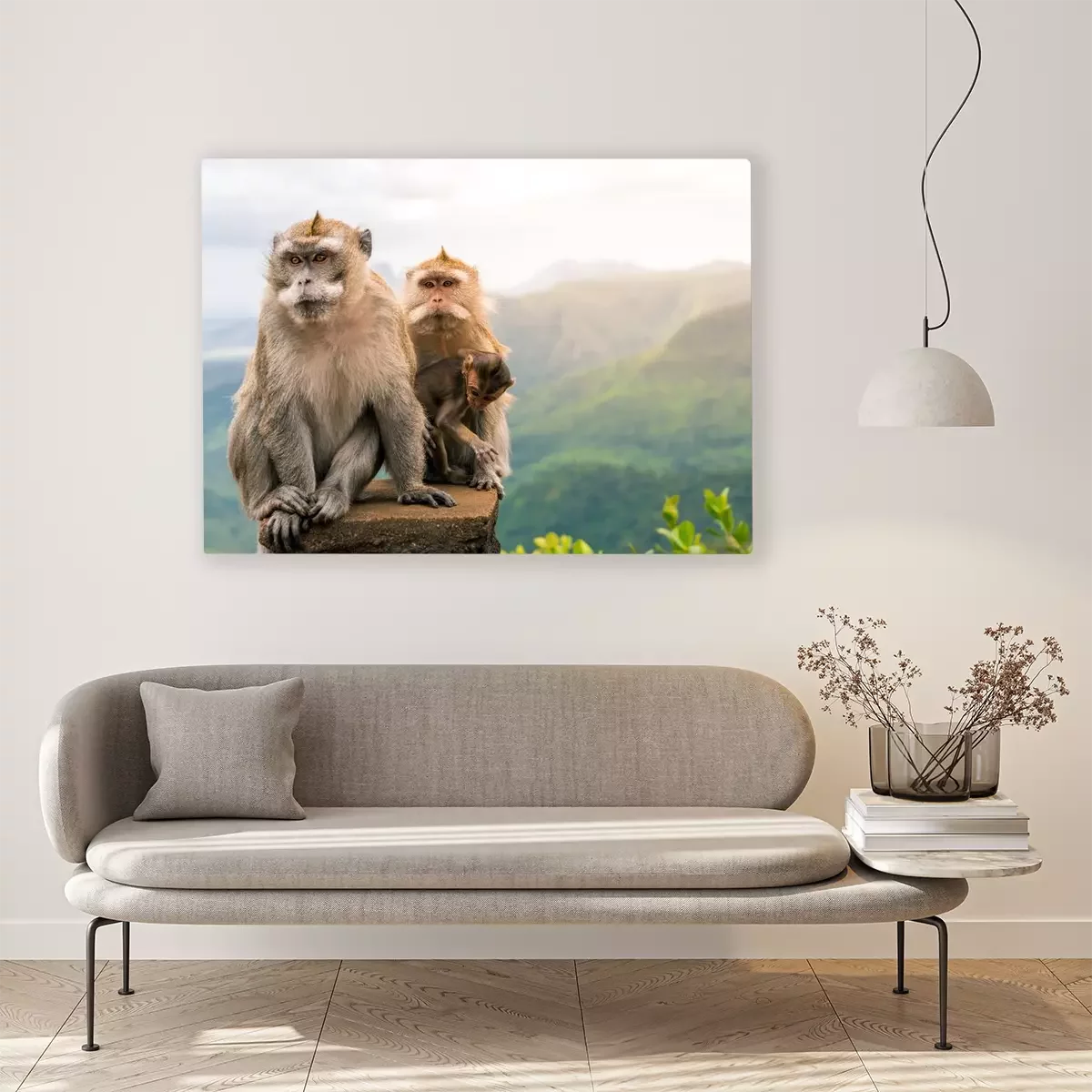 Bild Affenfamilie mit Bergpanorama im Hintergrund