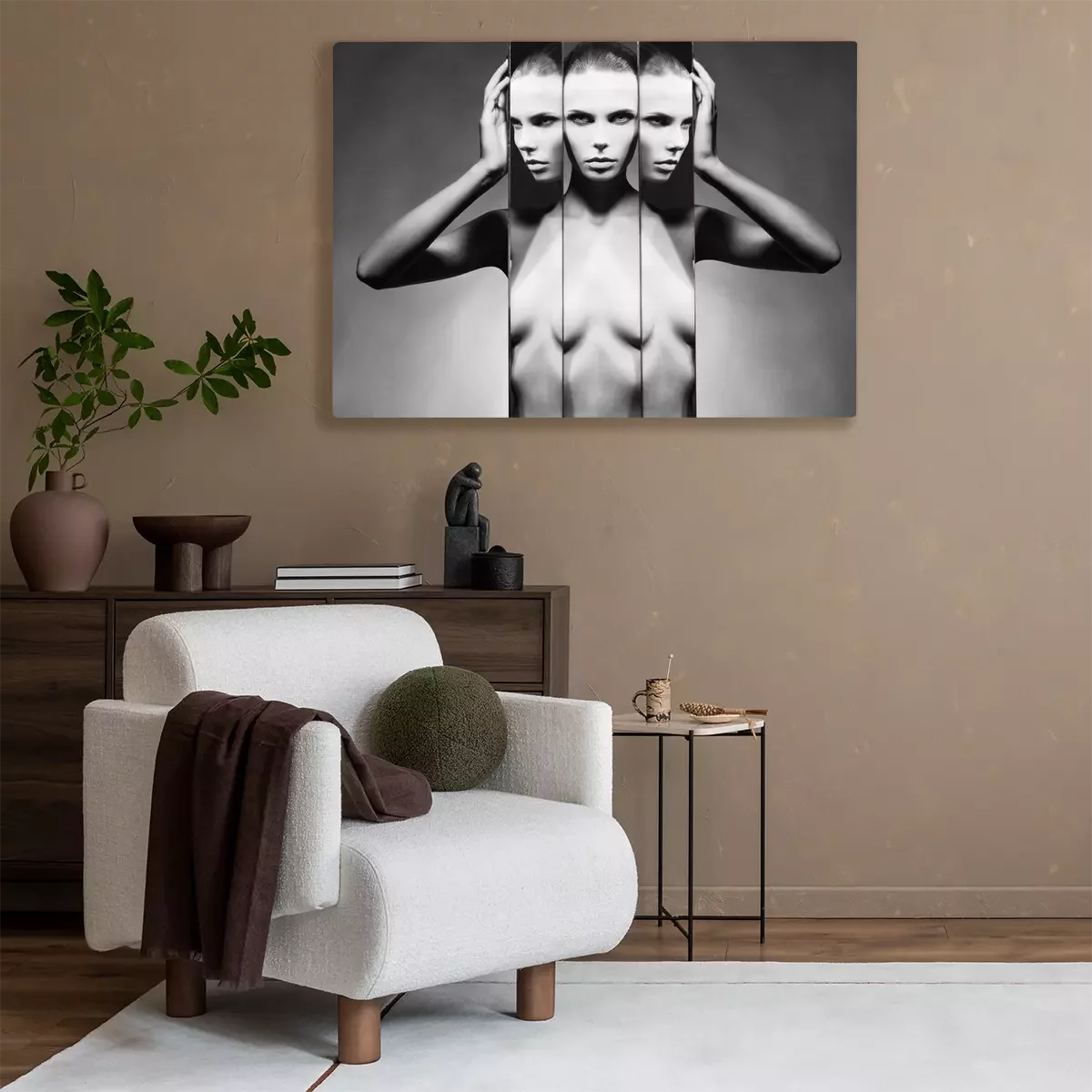 Bild Akt einer Frau, die sich in Spiegeln spiegelt