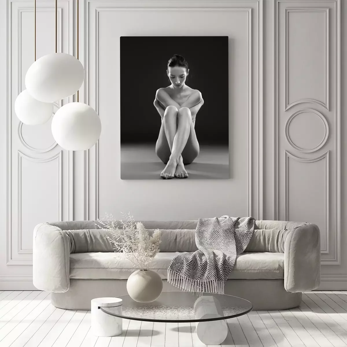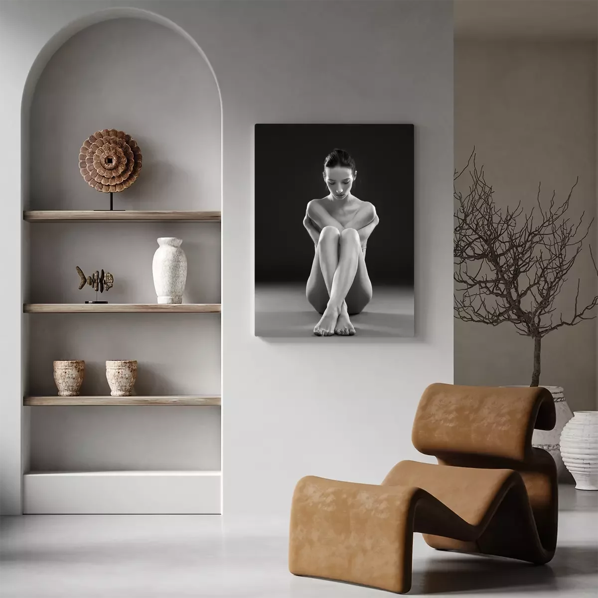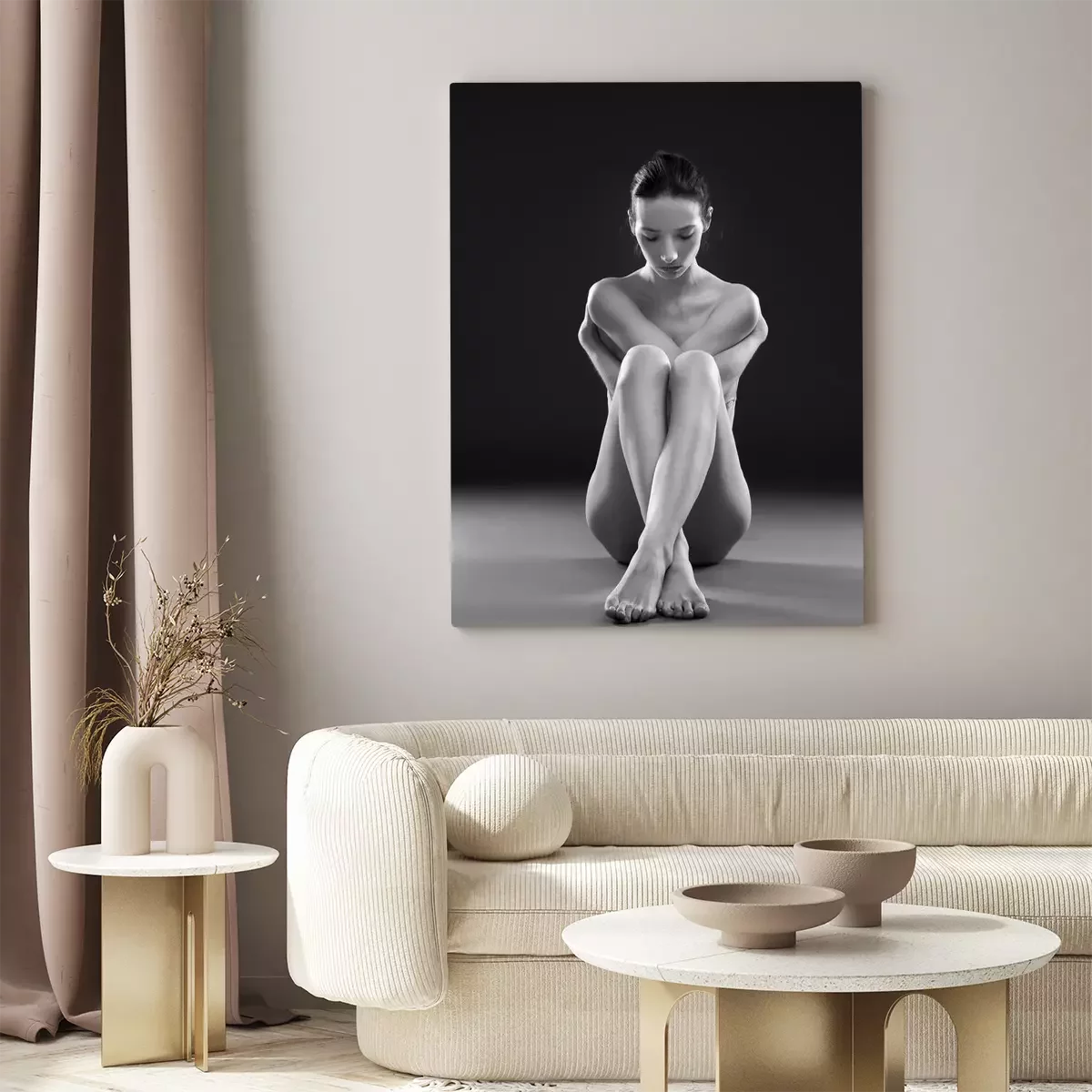 Bild Akt schwarz-weiß mit einer sitzenden Frau