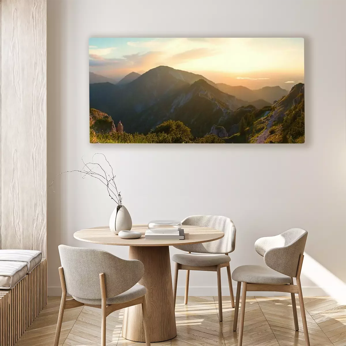 Das Motiv wird auf eine qualitativ hochwertige Leinwand gedruckt, die auf einen Blendrahmen gezogen wird. Da der Aufdruck die Seitenkanten bedeckt, muss das Bild nicht zusätzlich eingerahmt werden. Wir empfehlen außerdem Kompositionen aus mehreren Bildern, die ein harmonisches Ganzes bilden.