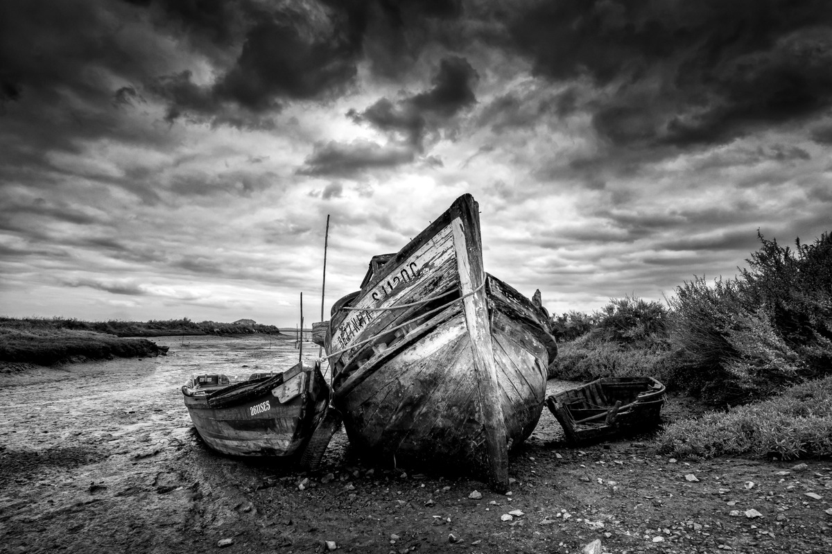 Bild: Alte Holzboote unter einem stürmischen Himmel