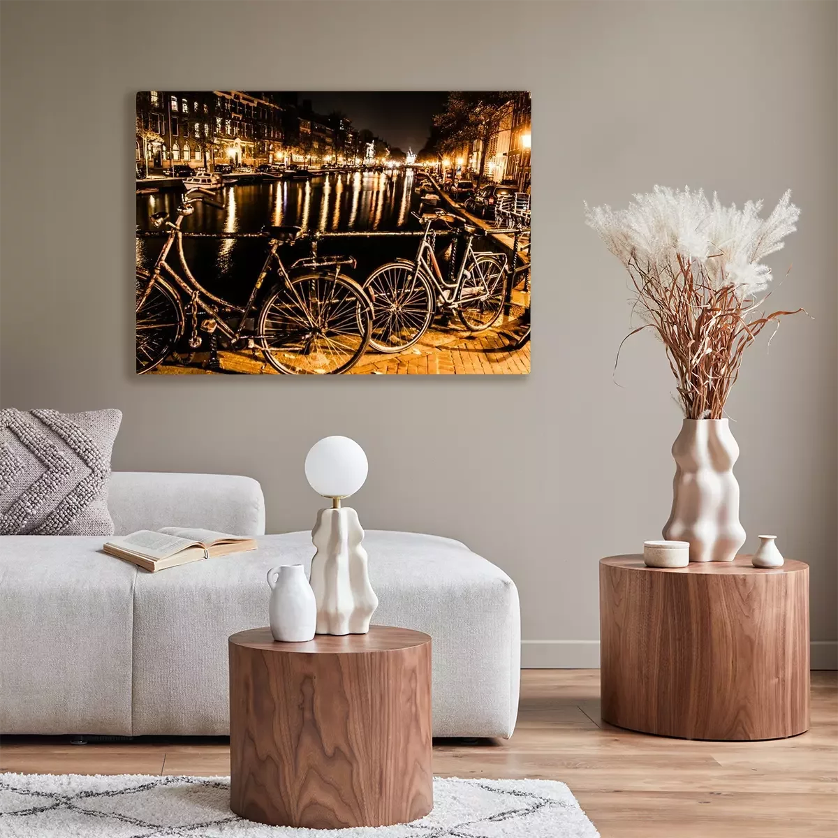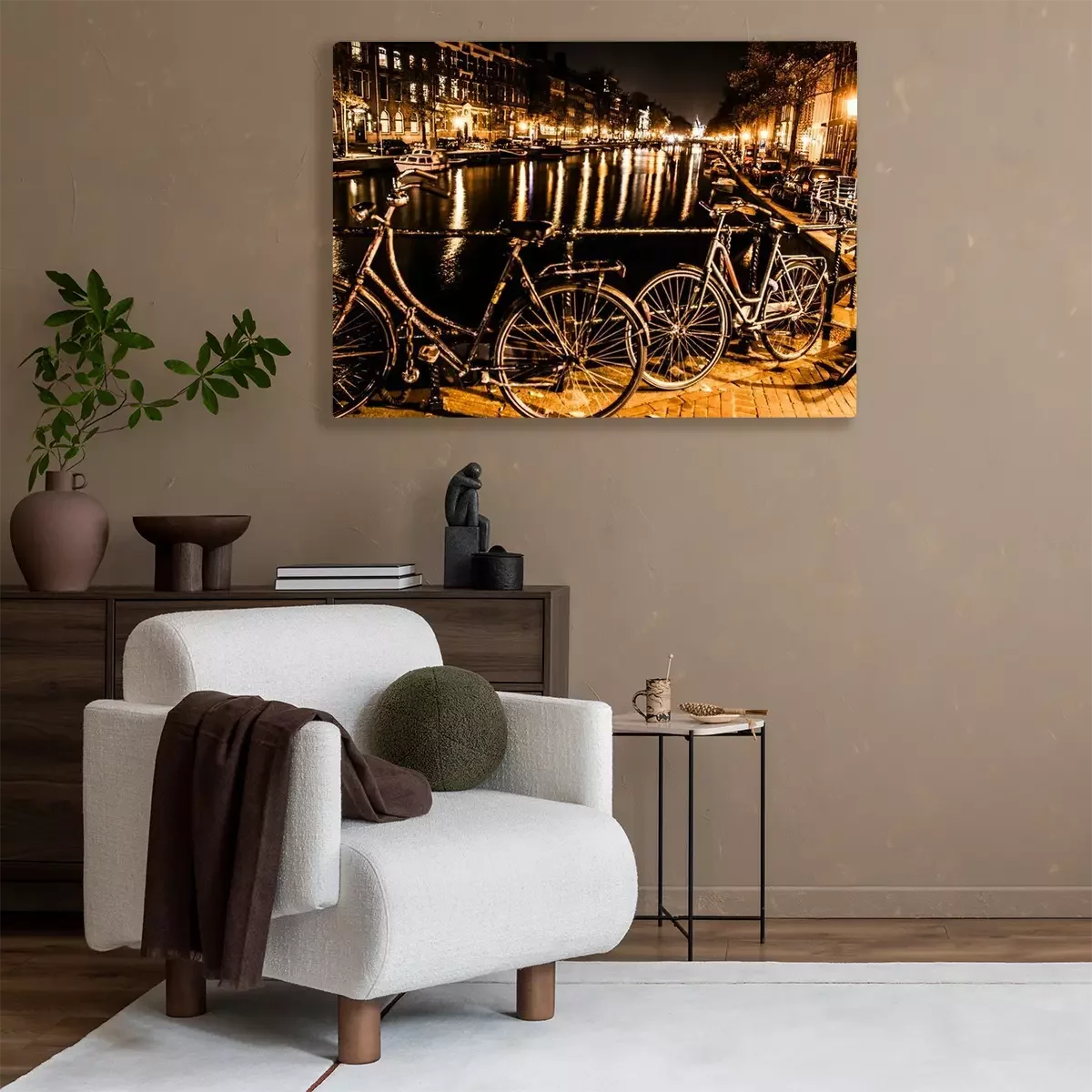 Bild Amsterdam bei Nacht mit Fahrrädern