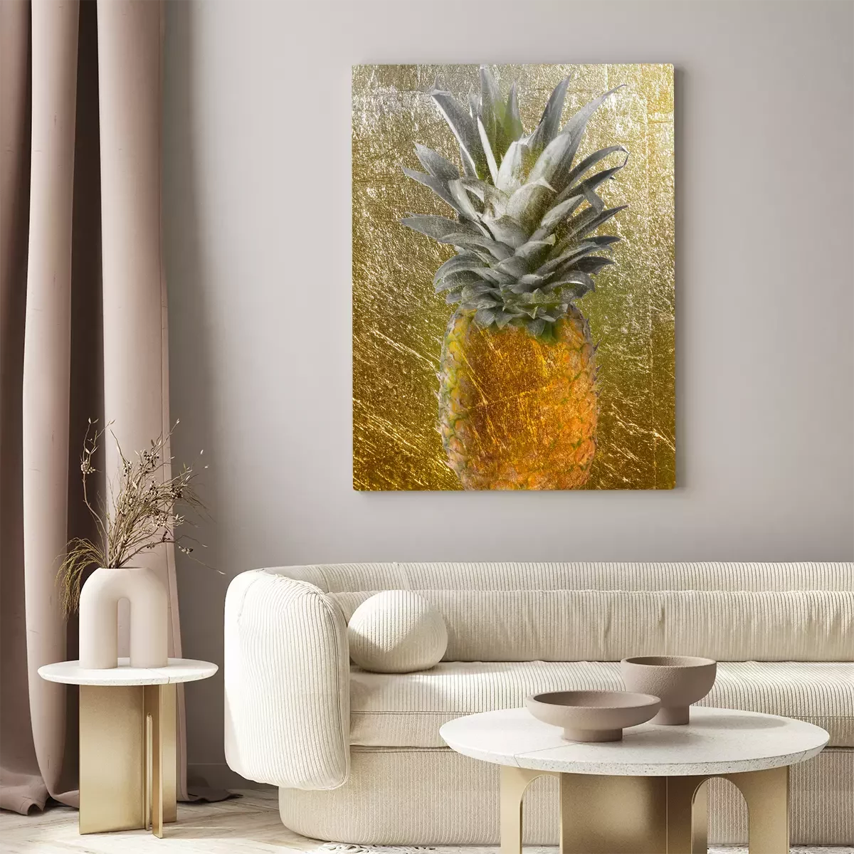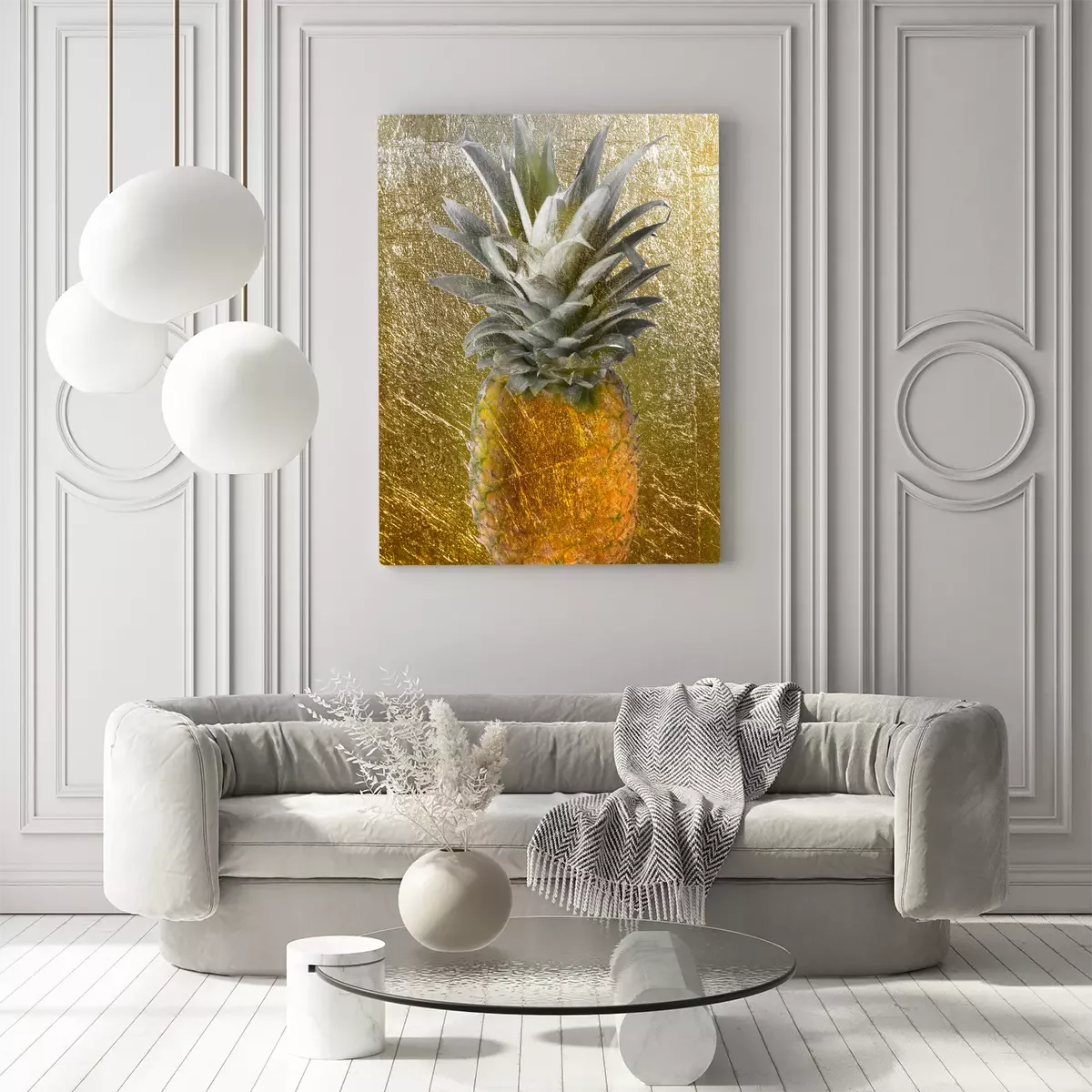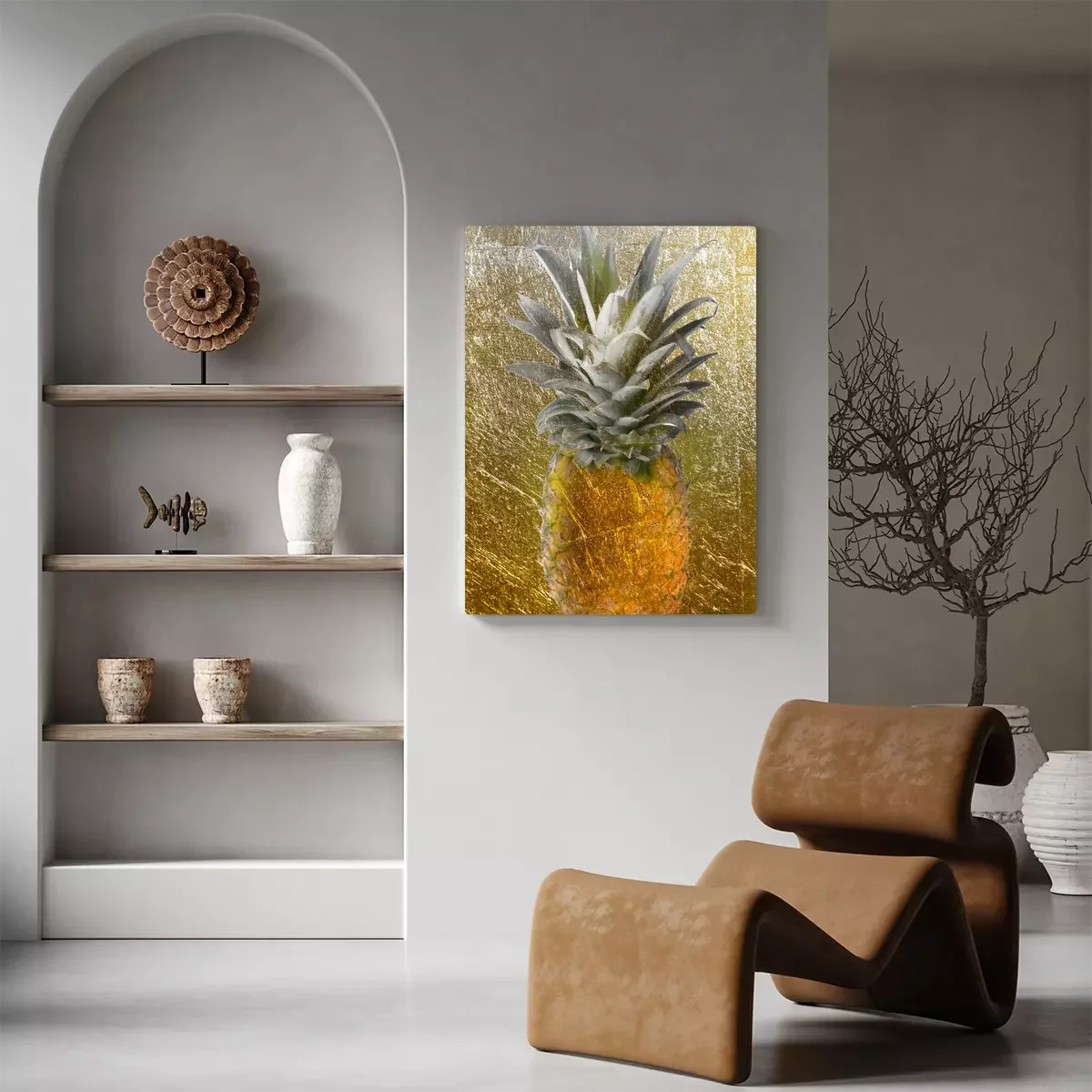 Ananas auf metallischem hintergrund in einem goldenen farbton