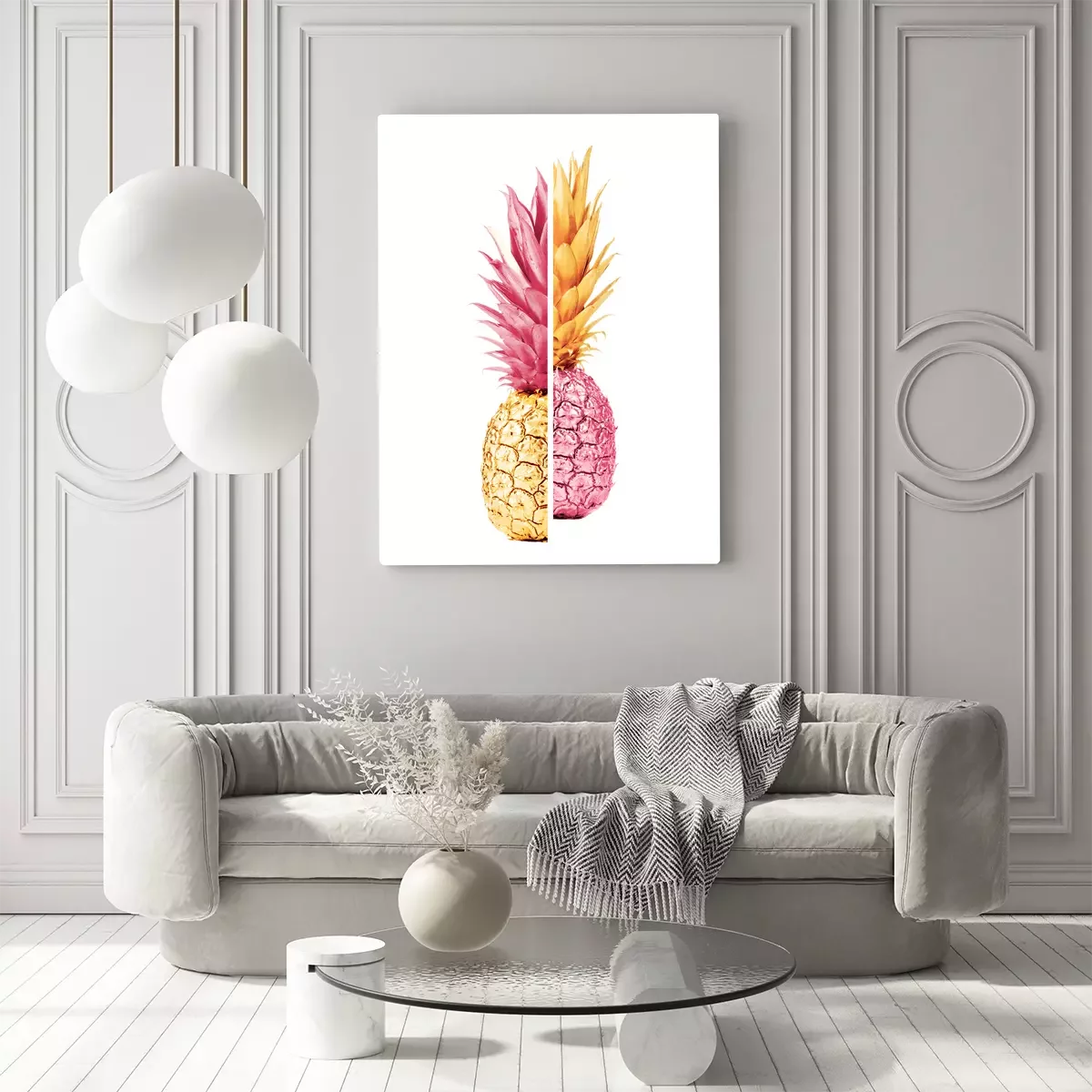 Ananashälften in gold und rosa