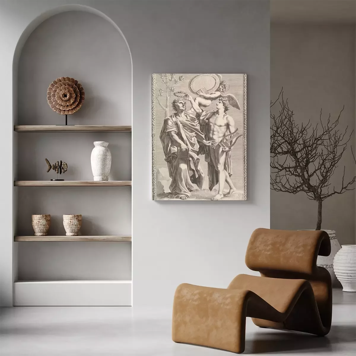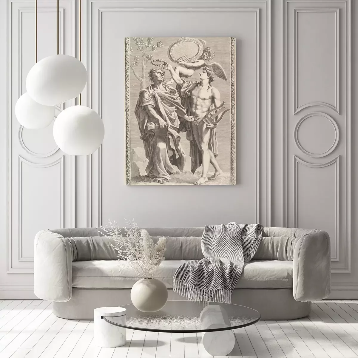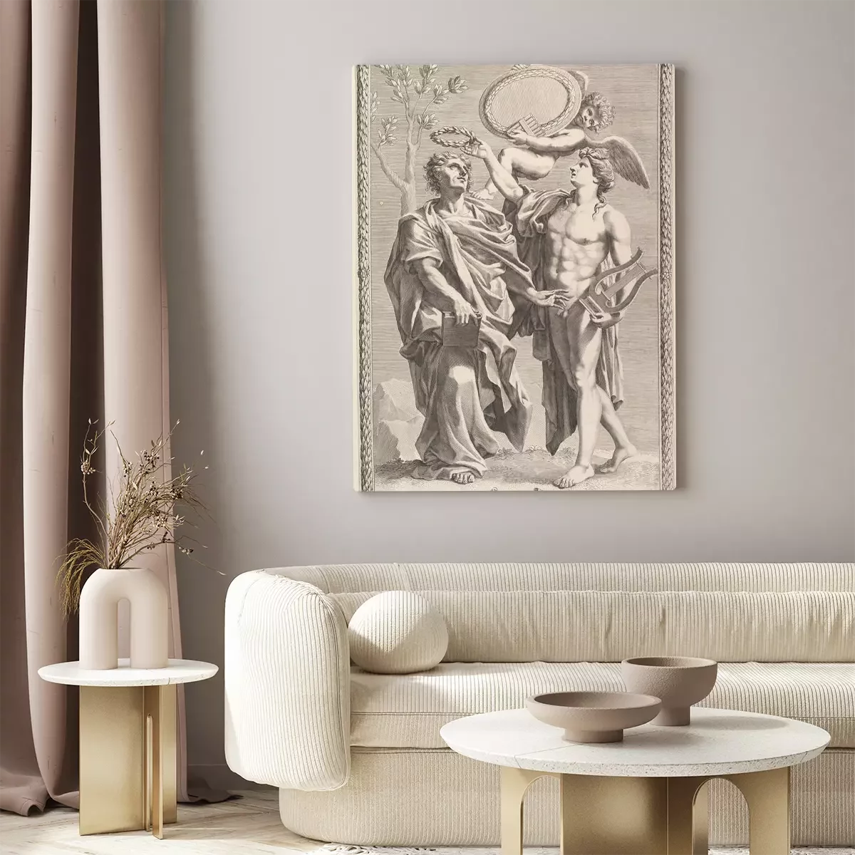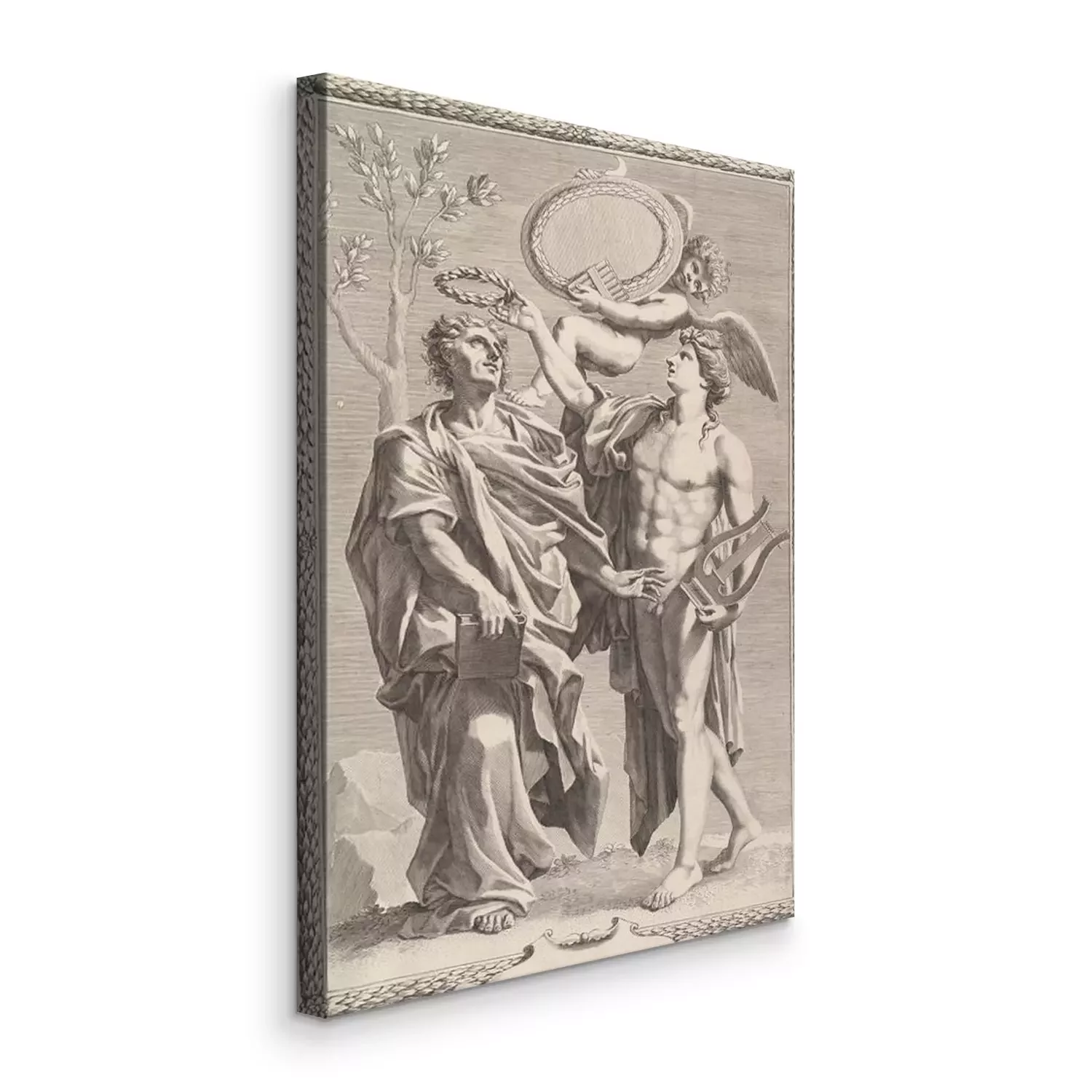 Apollo mit einem dichter und einem engel mit einem lorbeerkranz
