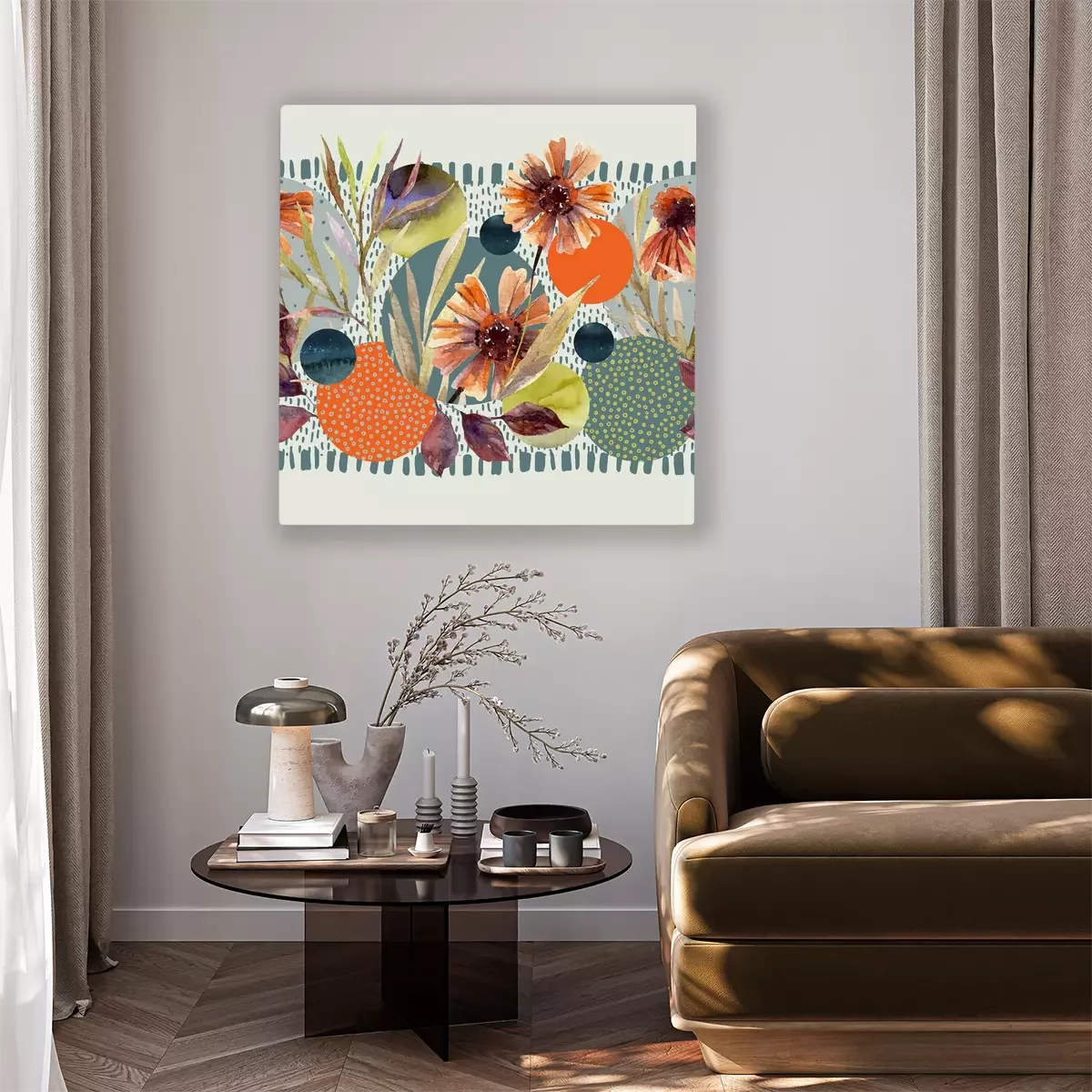 Bild Aquarell-Blumen auf geometrischem Hintergrund