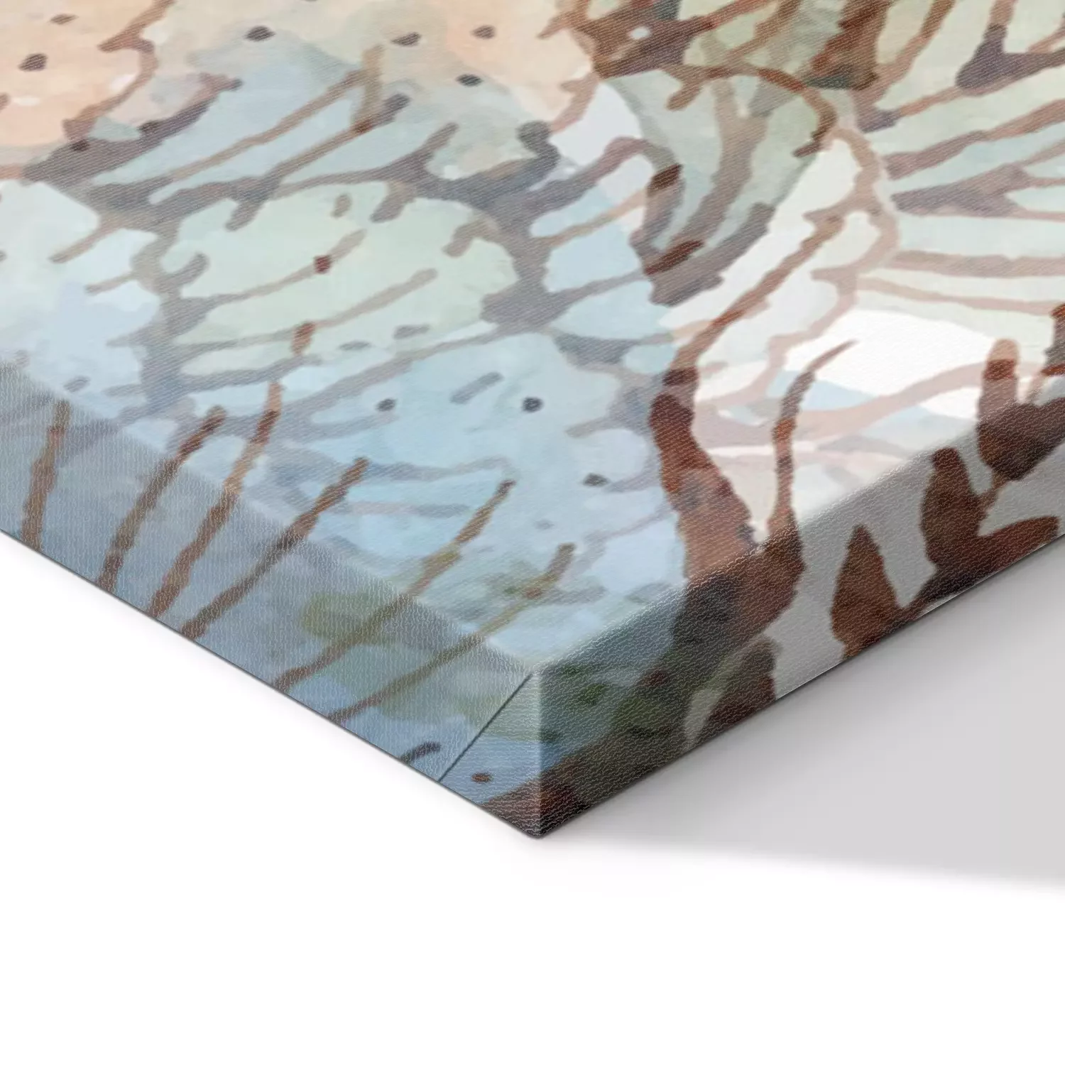 Das Motiv wird auf eine qualitativ hochwertige Leinwand gedruckt, die auf einen Blendrahmen gezogen wird. Da der Aufdruck die Seitenkanten bedeckt, muss das Bild nicht zusätzlich eingerahmt werden. Wir empfehlen außerdem Kompositionen aus mehreren Bildern, die ein harmonisches Ganzes bilden.