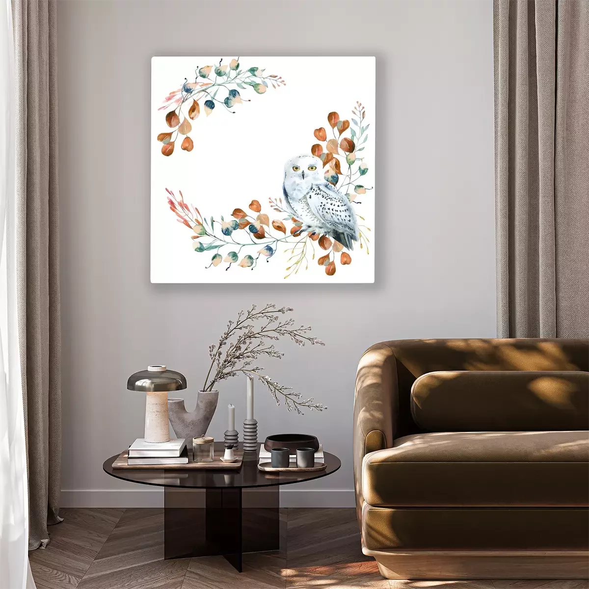 Bild: Aquarell-Schnee-Eule auf einem Ast