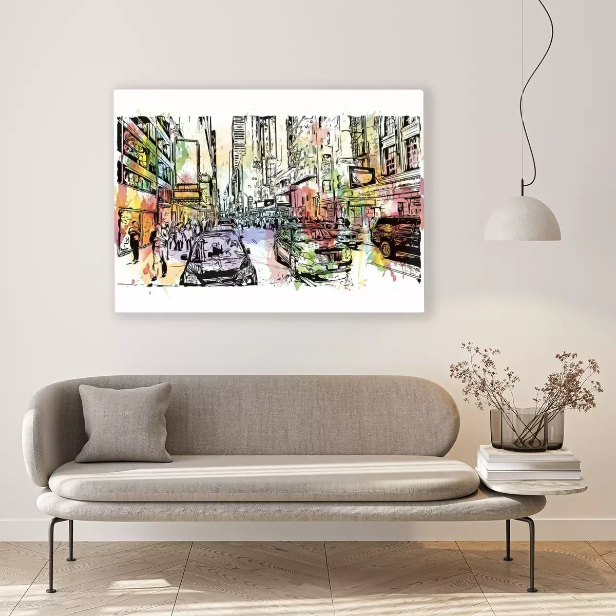 Bild Aquarellspritzen mit Hand gezeichneter Skizze von New York City, USA in der Vektorillustration.