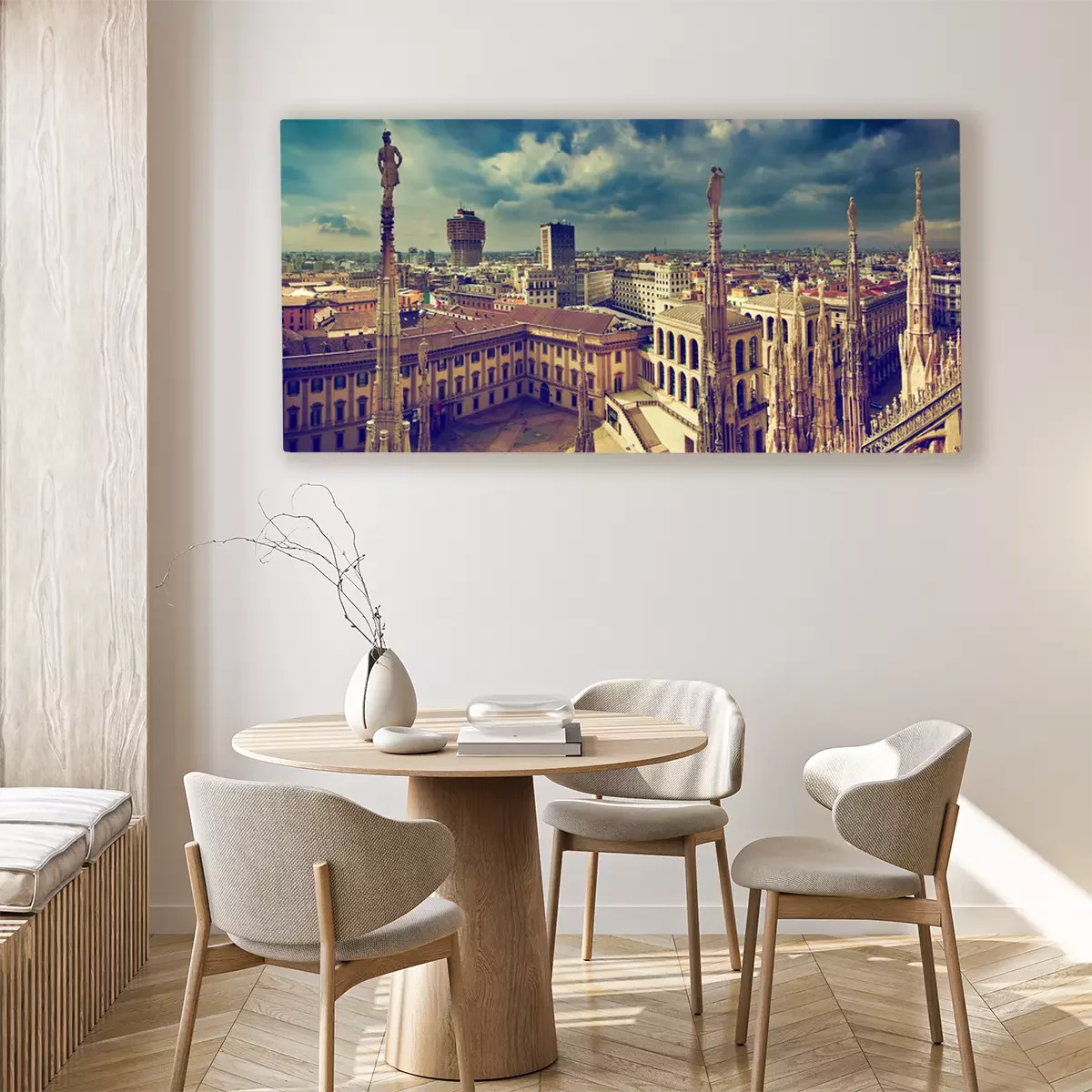 Das Motiv wird auf eine qualitativ hochwertige Leinwand gedruckt, die auf einen Blendrahmen gezogen wird. Da der Aufdruck die Seitenkanten bedeckt, muss das Bild nicht zusätzlich eingerahmt werden. Wir empfehlen außerdem Kompositionen aus mehreren Bildern, die ein harmonisches Ganzes bilden.