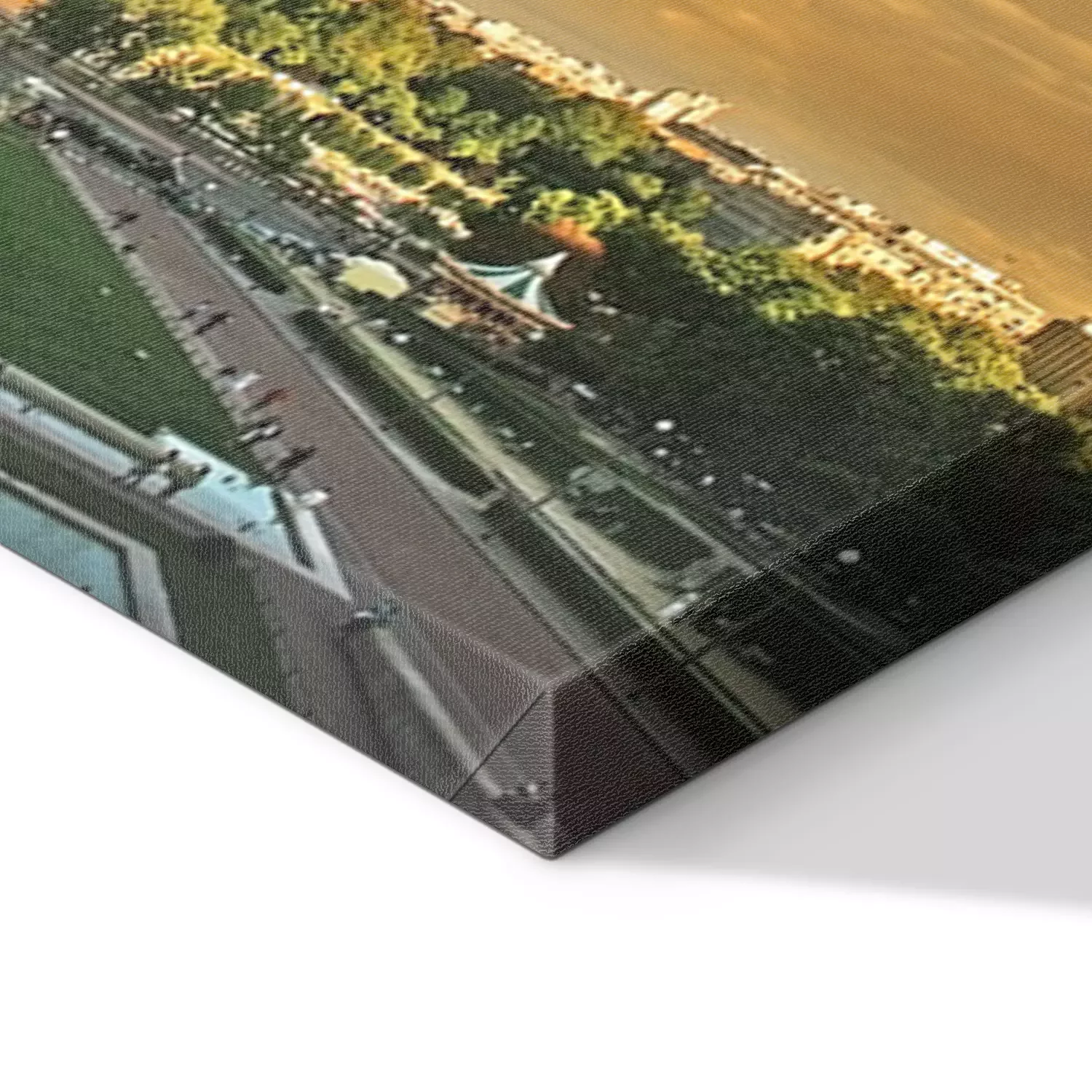 Das Motiv wird auf eine qualitativ hochwertige Leinwand gedruckt, die auf einen Blendrahmen gezogen wird. Da der Aufdruck die Seitenkanten bedeckt, muss das Bild nicht zusätzlich eingerahmt werden. Wir empfehlen außerdem Kompositionen aus mehreren Bildern, die ein harmonisches Ganzes bilden.