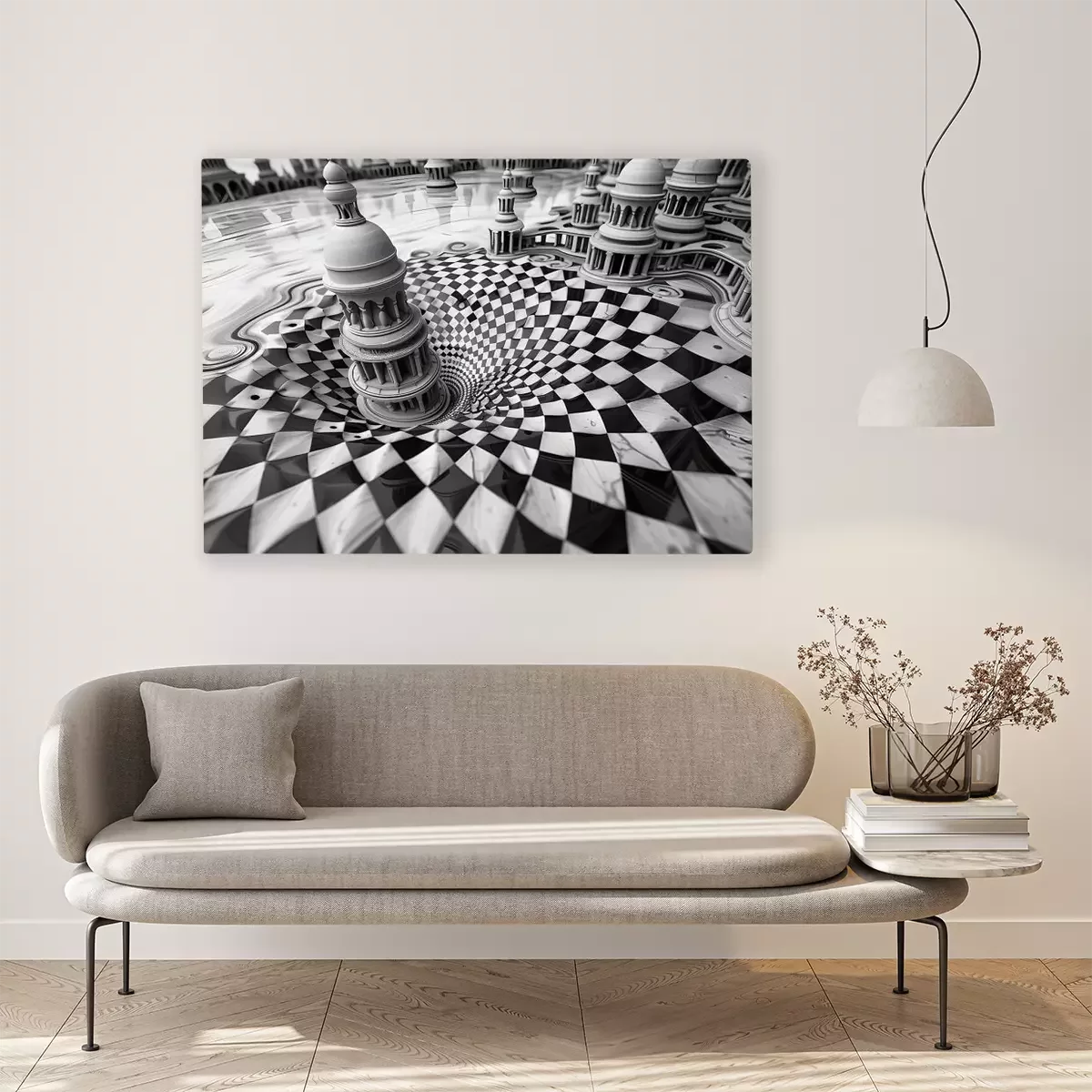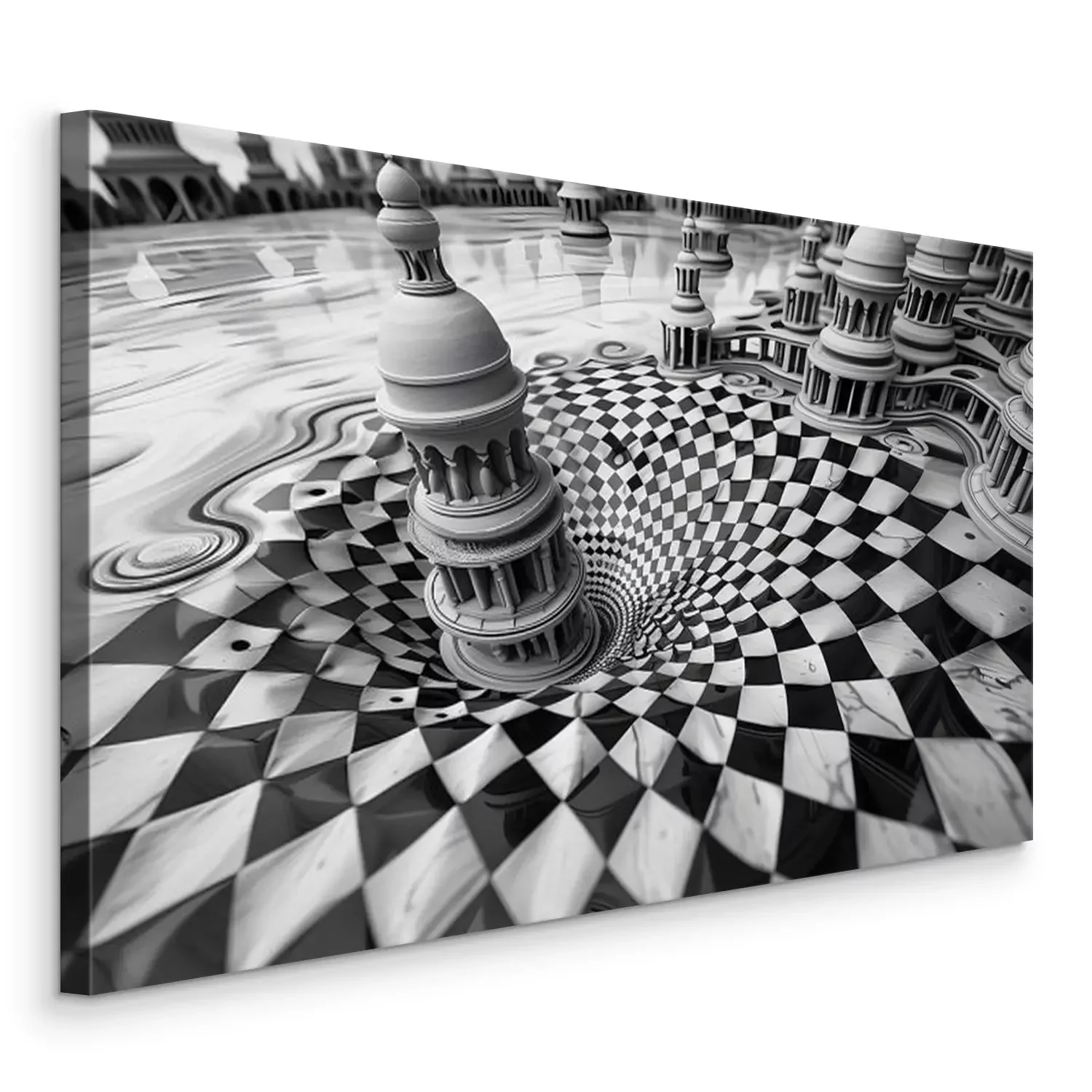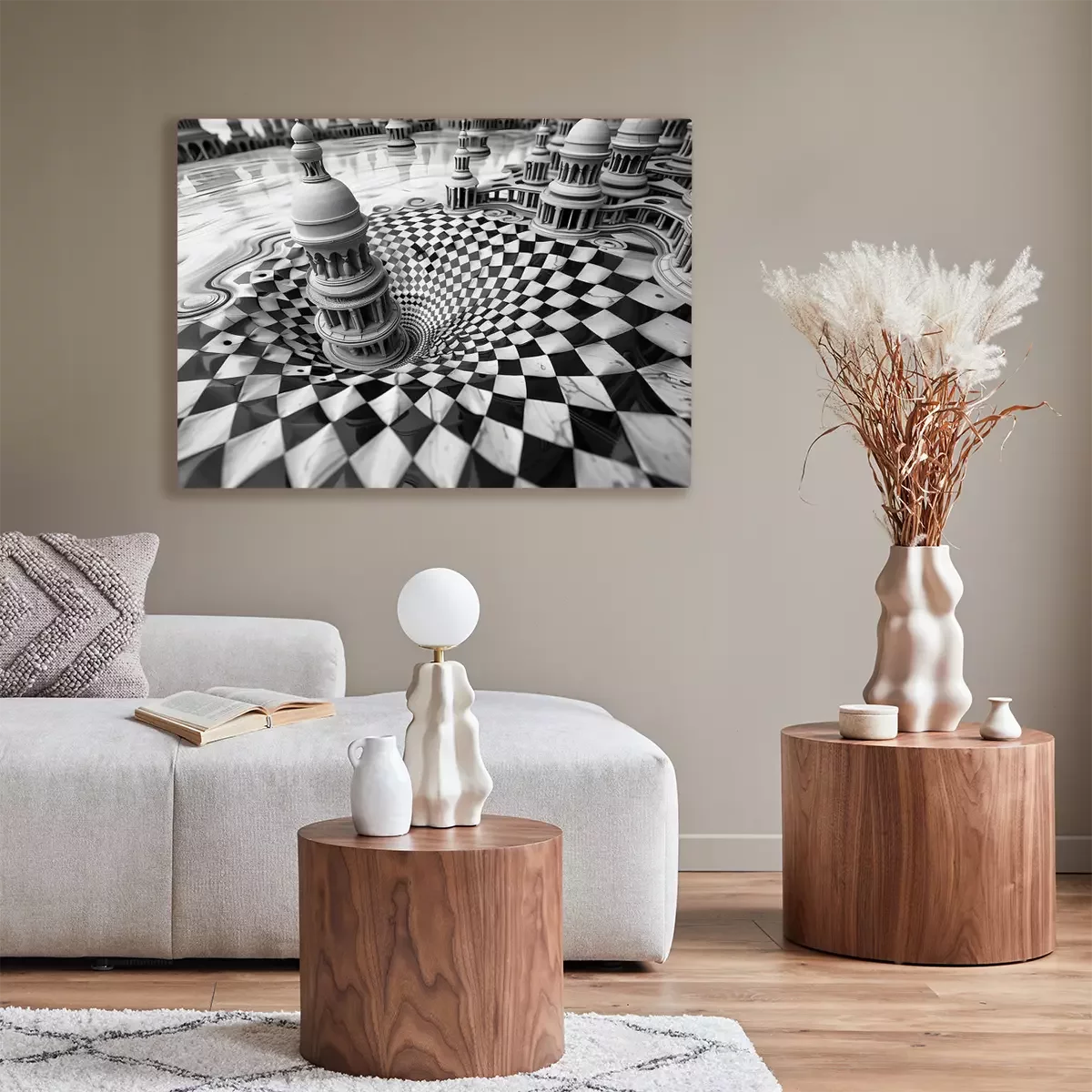 Architektur, die in den schwarz-weiß-abgrund stürzt.