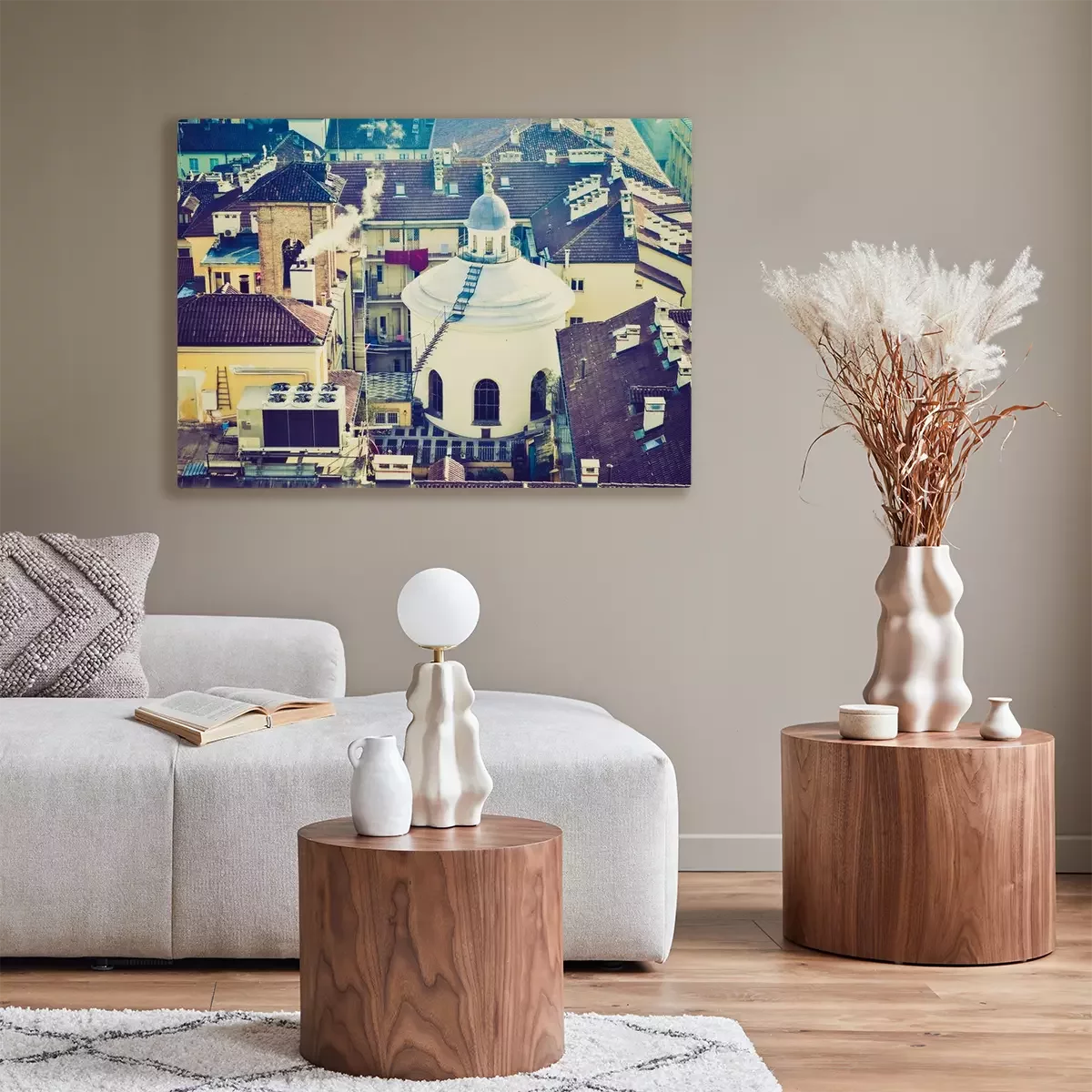 Das Motiv wird auf eine qualitativ hochwertige Leinwand gedruckt, die auf einen Blendrahmen gezogen wird. Da der Aufdruck die Seitenkanten bedeckt, muss das Bild nicht zusätzlich eingerahmt werden. Wir empfehlen außerdem Kompositionen aus mehreren Bildern, die ein harmonisches Ganzes bilden.