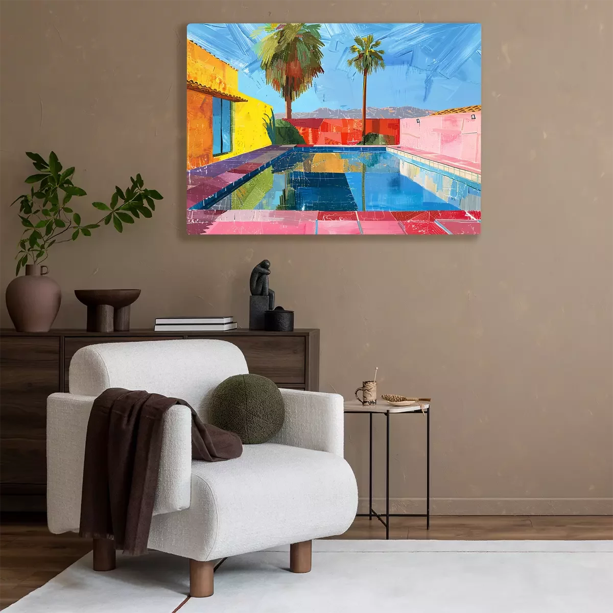 Architektur warmer länder mit swimmingpool und palmen