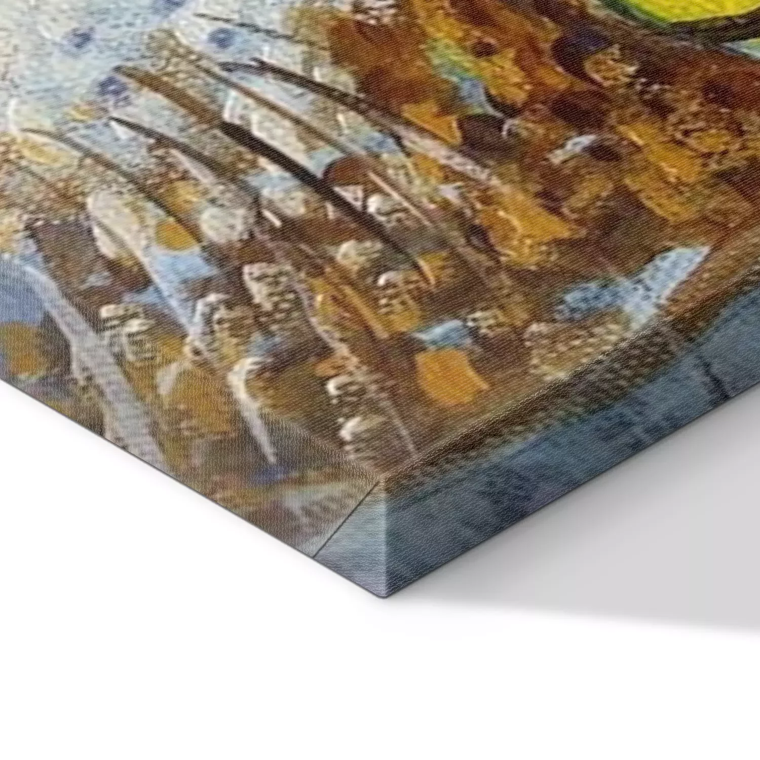 Das Motiv wird auf eine qualitativ hochwertige Leinwand gedruckt, die auf einen Blendrahmen gezogen wird. Da der Aufdruck die Seitenkanten bedeckt, muss das Bild nicht zusätzlich eingerahmt werden. Wir empfehlen außerdem Kompositionen aus mehreren Bildern, die ein harmonisches Ganzes bilden.