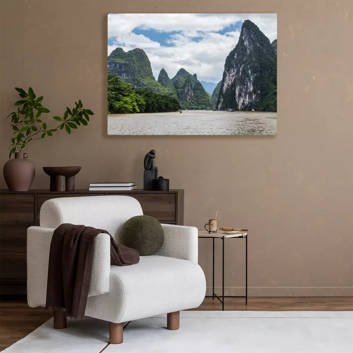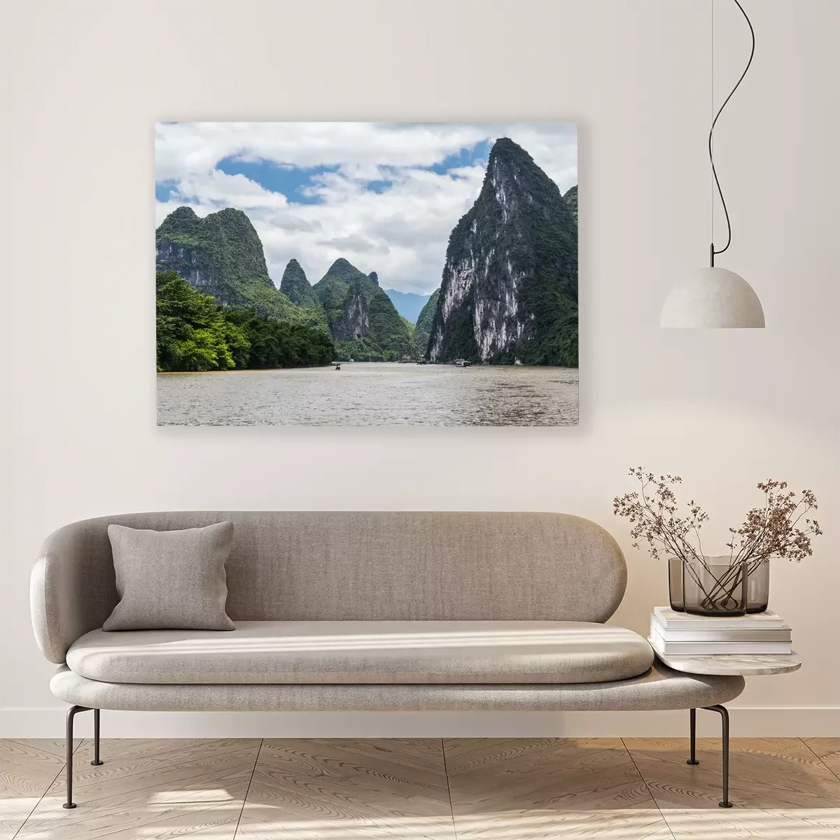 Bild Asiatische Landschaft mit Fluss und Bergen