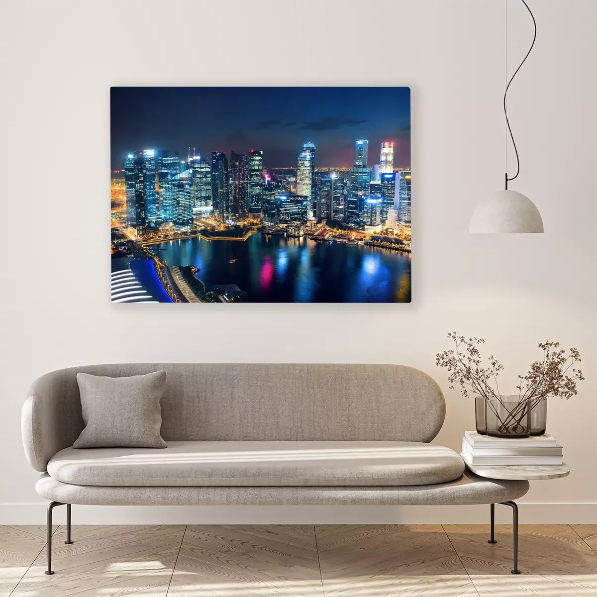Panorama mit beleuchteten Gebäuden bei Nacht
