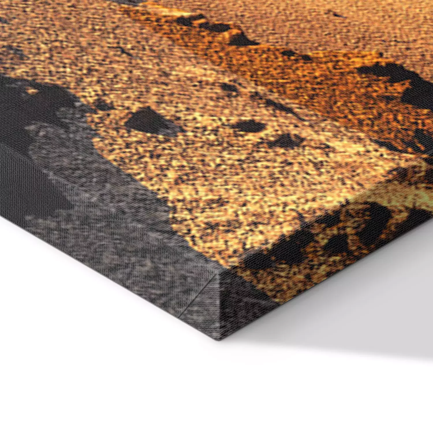 Das Motiv wird auf eine qualitativ hochwertige Leinwand gedruckt, die auf einen Blendrahmen gezogen wird. Da der Aufdruck die Seitenkanten bedeckt, muss das Bild nicht zusätzlich eingerahmt werden. Wir empfehlen außerdem Kompositionen aus mehreren Bildern, die ein harmonisches Ganzes bilden.