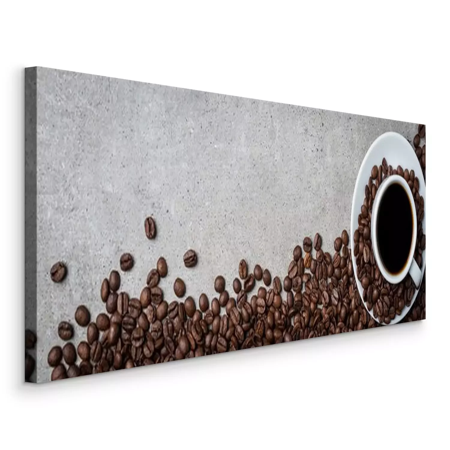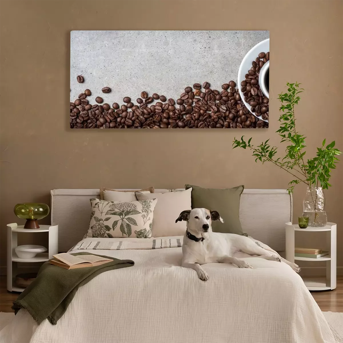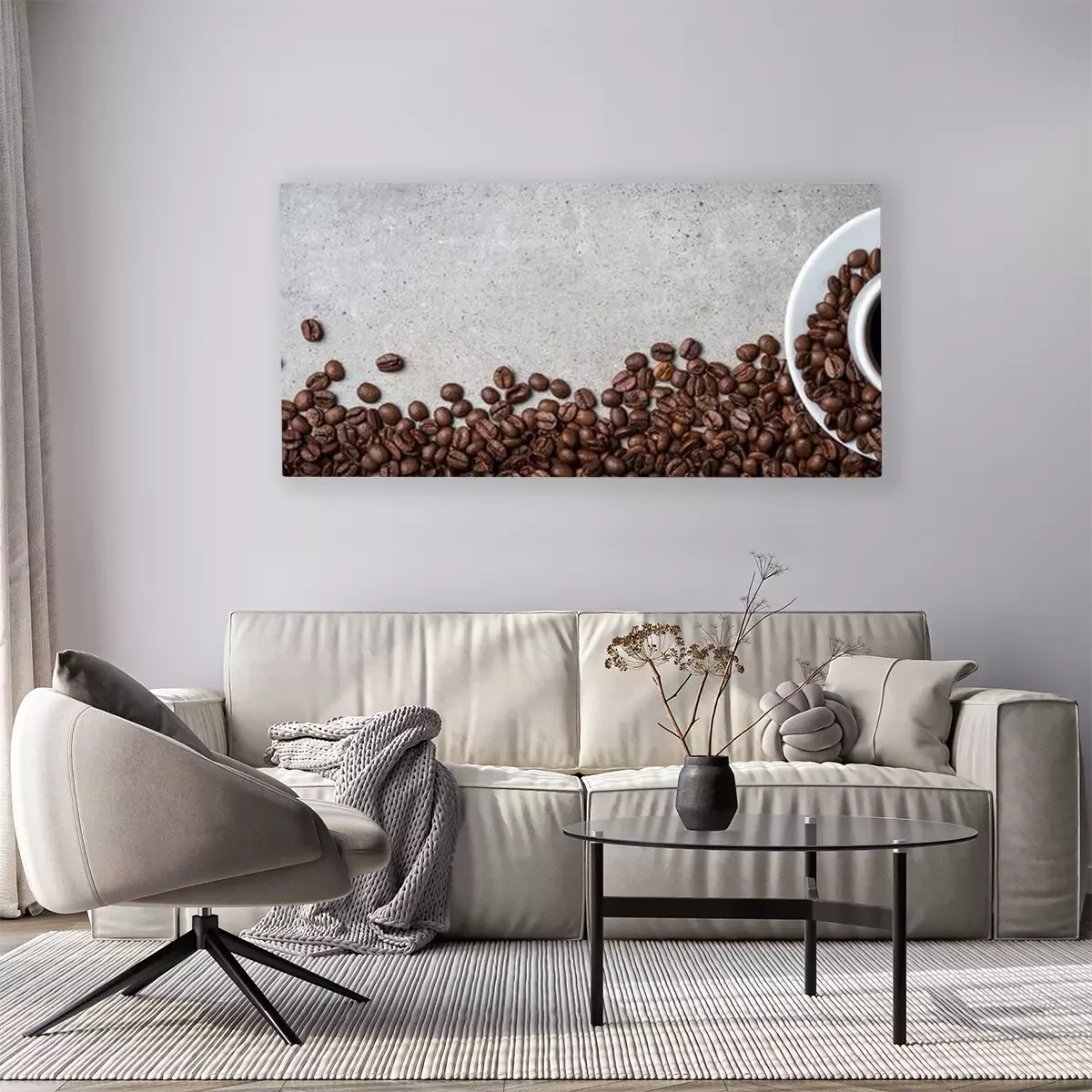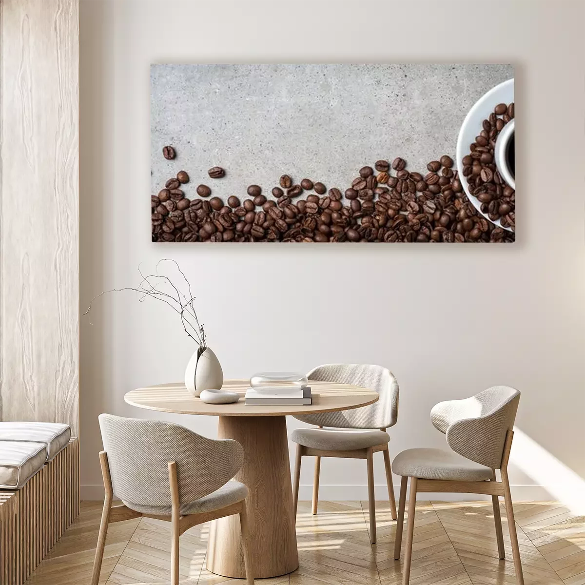 Bild: Auf dem Tisch und der Untertasse verschüttete Bohnen