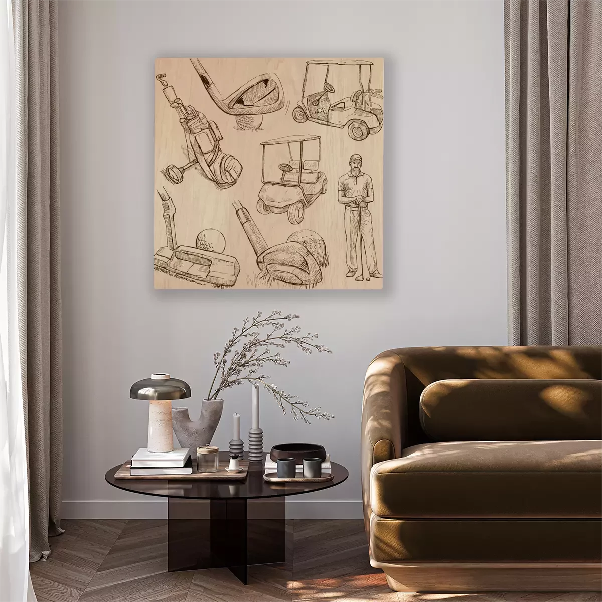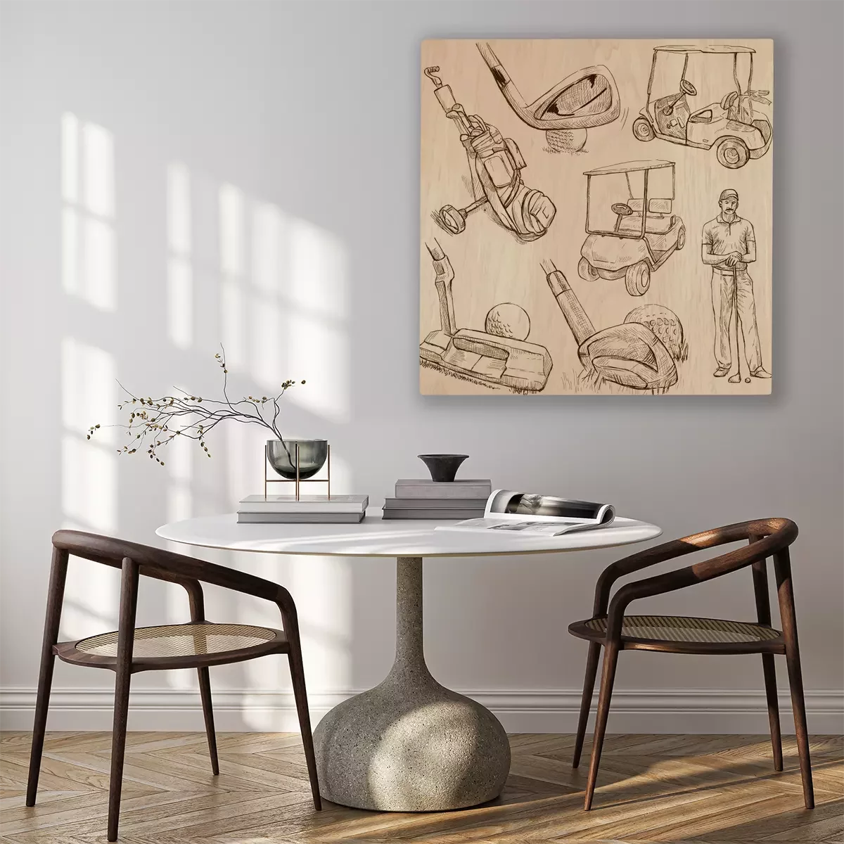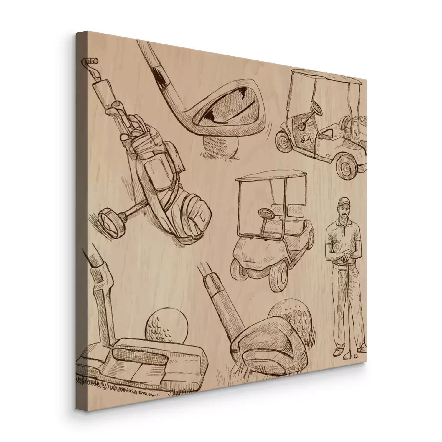 Auf Holz gezeichnete professionelle Golspielerinnen