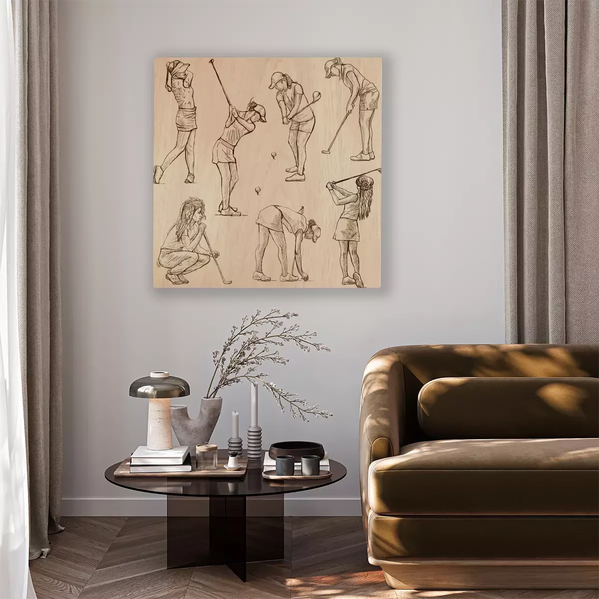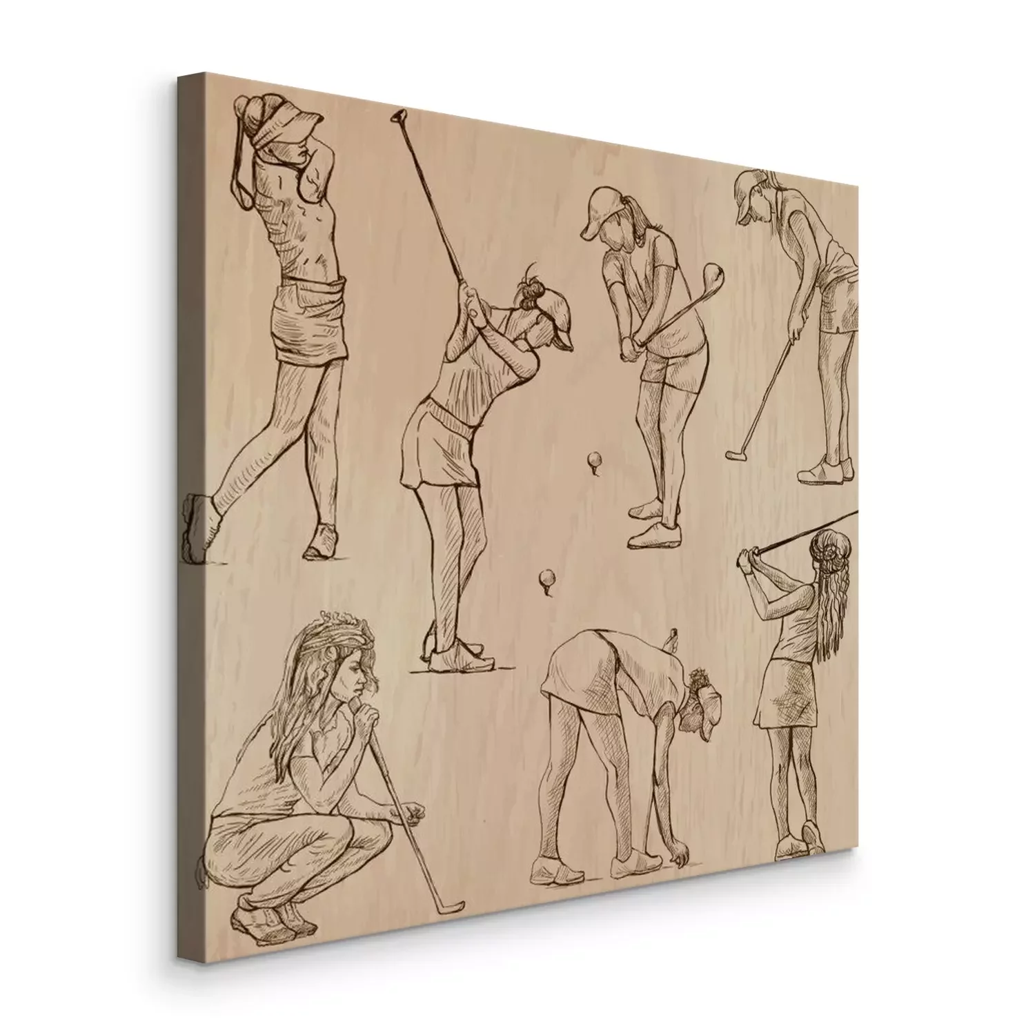 Bild Auf Holz gezeichnete professionelle Golspielerinnen