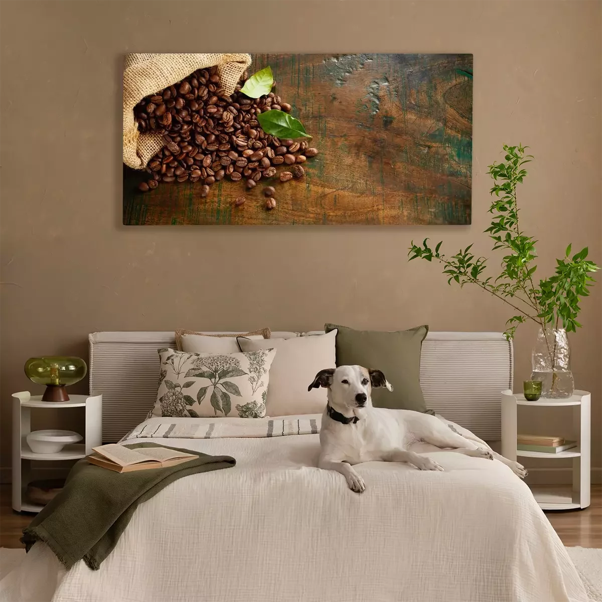 Bild: Auf Holz verschüttete Kaffeebohnen