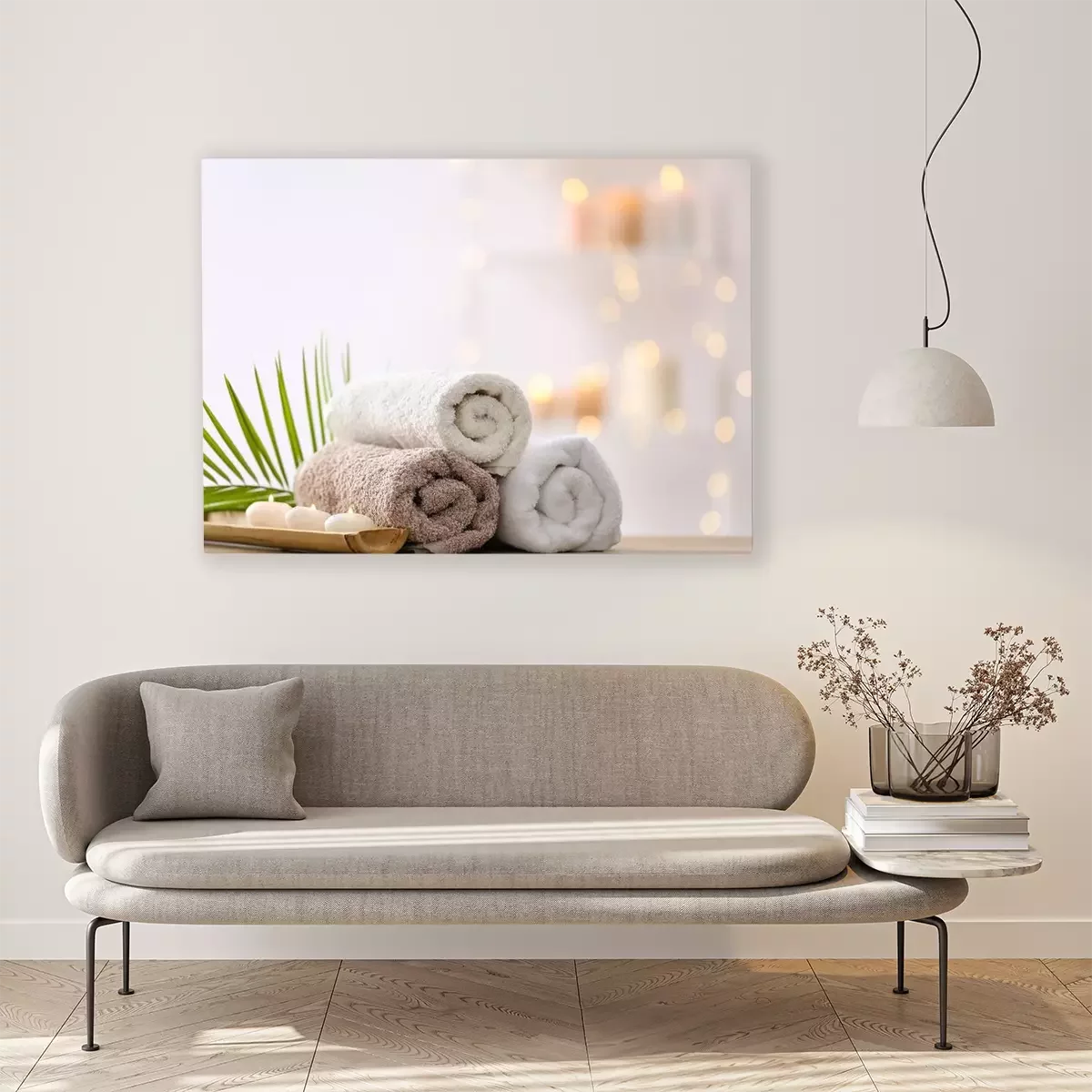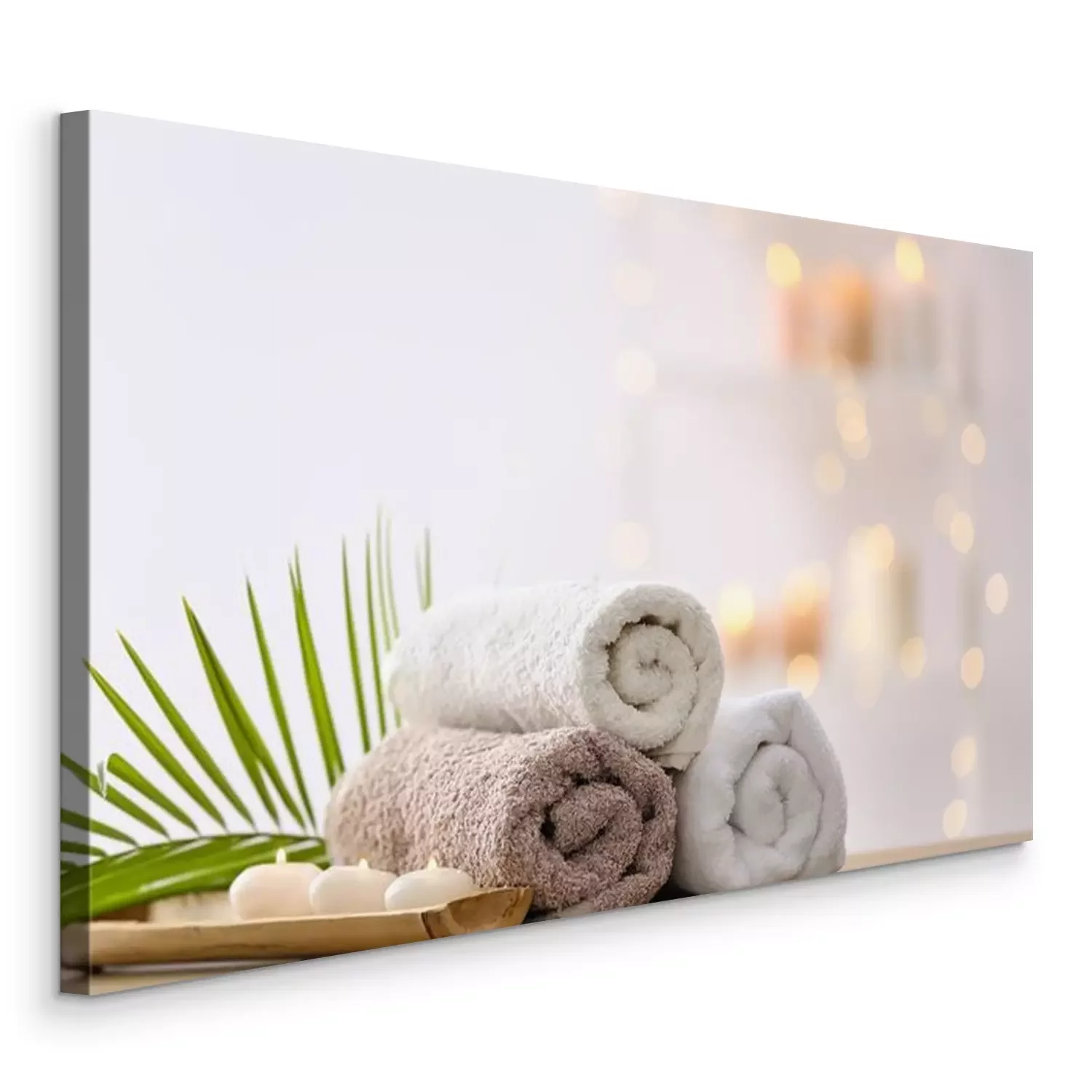 Bild Aufgerollte Handtücher und Kerzen