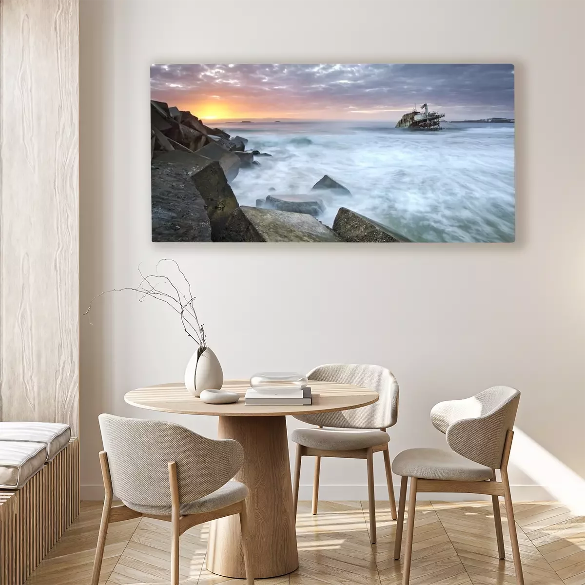 Das Motiv wird auf eine qualitativ hochwertige Leinwand gedruckt, die auf einen Blendrahmen gezogen wird. Da der Aufdruck die Seitenkanten bedeckt, muss das Bild nicht zusätzlich eingerahmt werden. Wir empfehlen außerdem Kompositionen aus mehreren Bildern, die ein harmonisches Ganzes bilden.