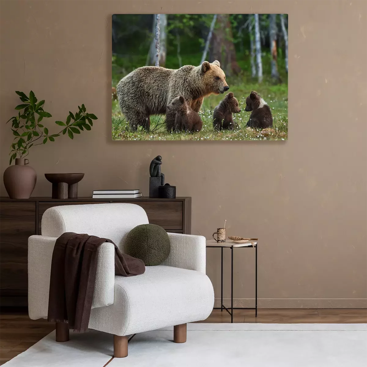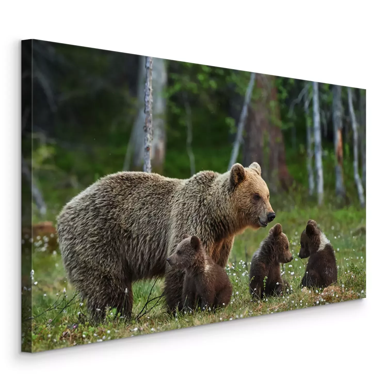 Eine Bärenfamilie auf einer grünen Waldlichtung