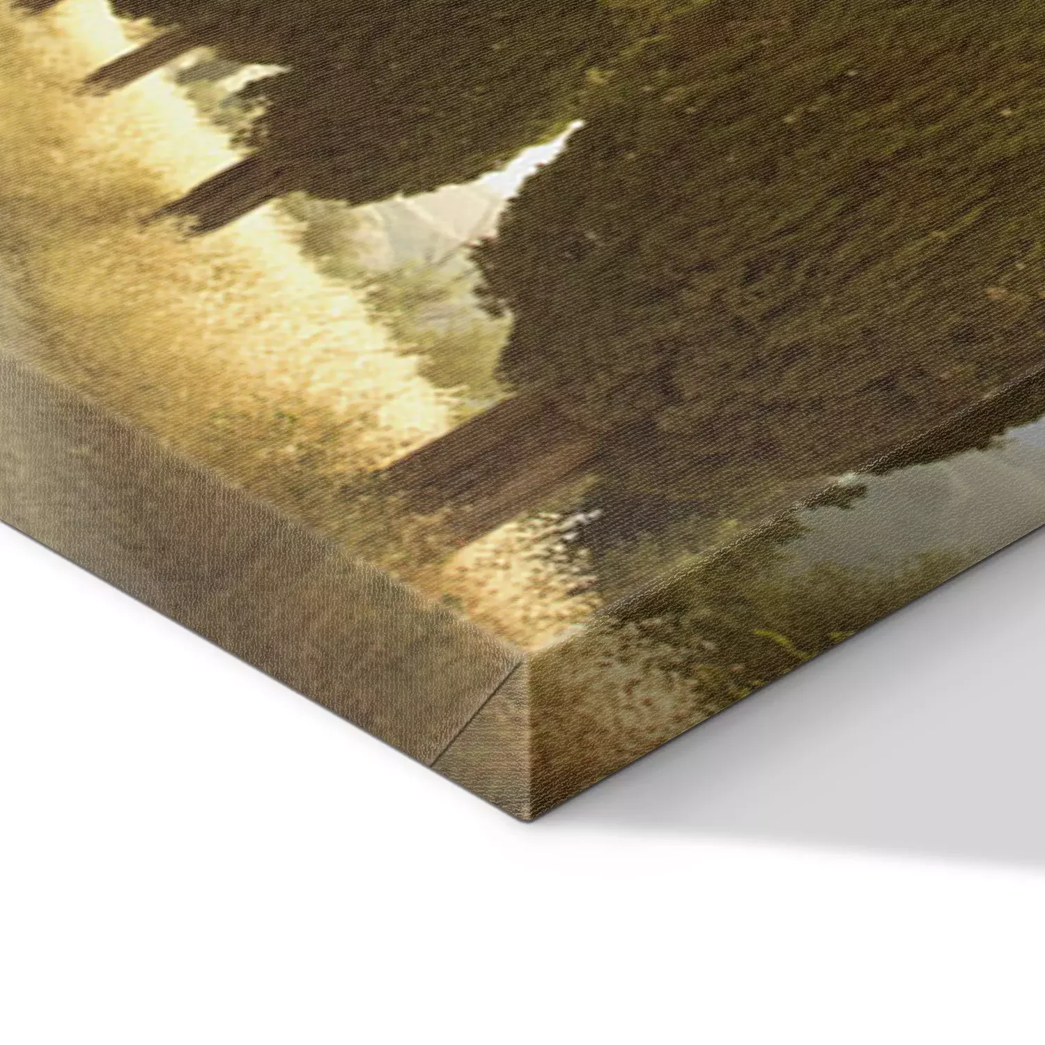 Das Motiv wird auf eine qualitativ hochwertige Leinwand gedruckt, die auf einen Blendrahmen gezogen wird. Da der Aufdruck die Seitenkanten bedeckt, muss das Bild nicht zusätzlich eingerahmt werden. Wir empfehlen außerdem Kompositionen aus mehreren Bildern, die ein harmonisches Ganzes bilden.