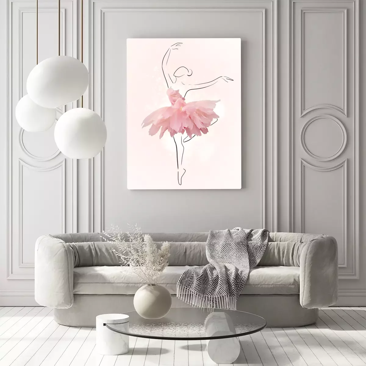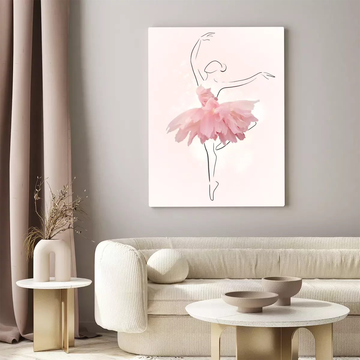 Ballerina in einem rosa geblümten outfit im linearen stil