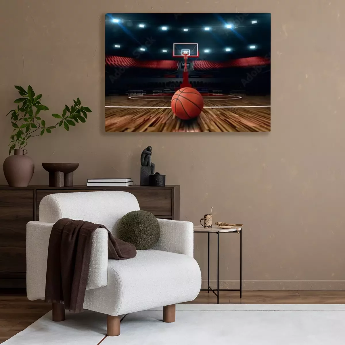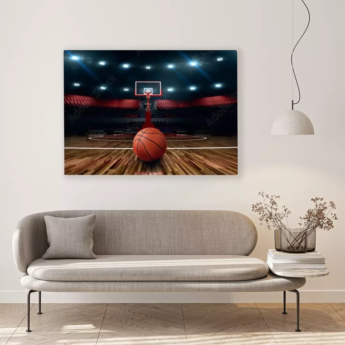 Bild: Baskettball in beleuchteter Sporthalle