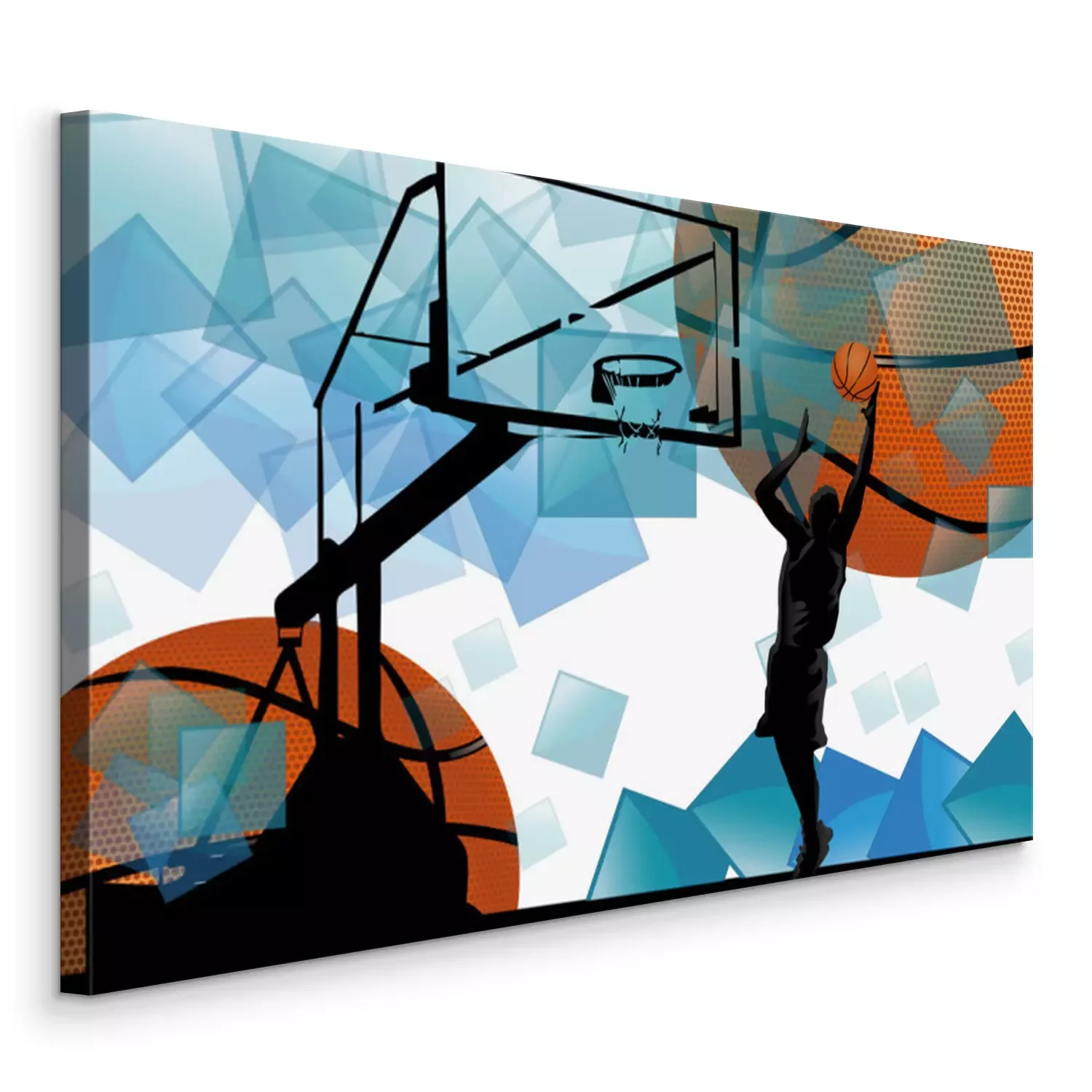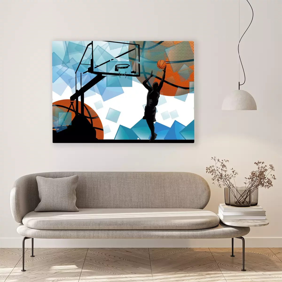 Bild Baskettballspieler mit Quadraten im Hintergrund