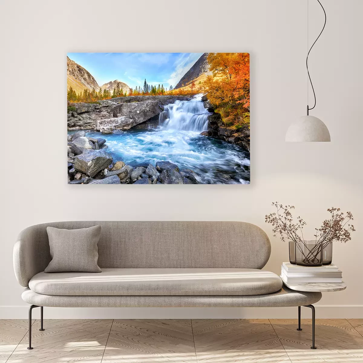 Bild Beautiful autumn landscape with yellow trees and waterfall