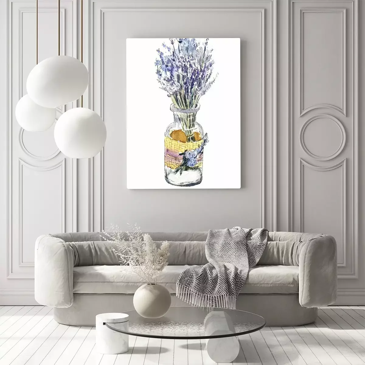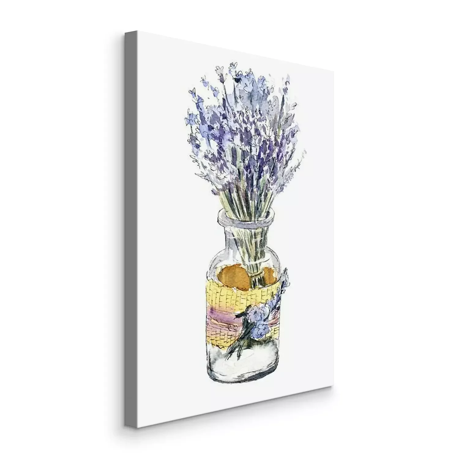 Bild Beautiful bouquet of lavender in a glass bottle. Watercolor illustration on white background