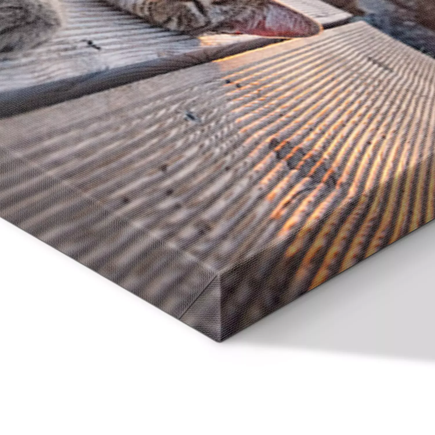 Das Motiv wird auf eine qualitativ hochwertige Leinwand gedruckt, die auf einen Blendrahmen gezogen wird. Da der Aufdruck die Seitenkanten bedeckt, muss das Bild nicht zusätzlich eingerahmt werden. Wir empfehlen außerdem Kompositionen aus mehreren Bildern, die ein harmonisches Ganzes bilden.