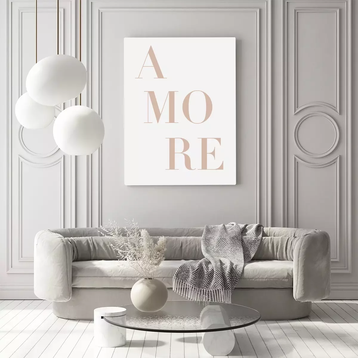 Beige amore-schriftzug auf grauem hintergrund