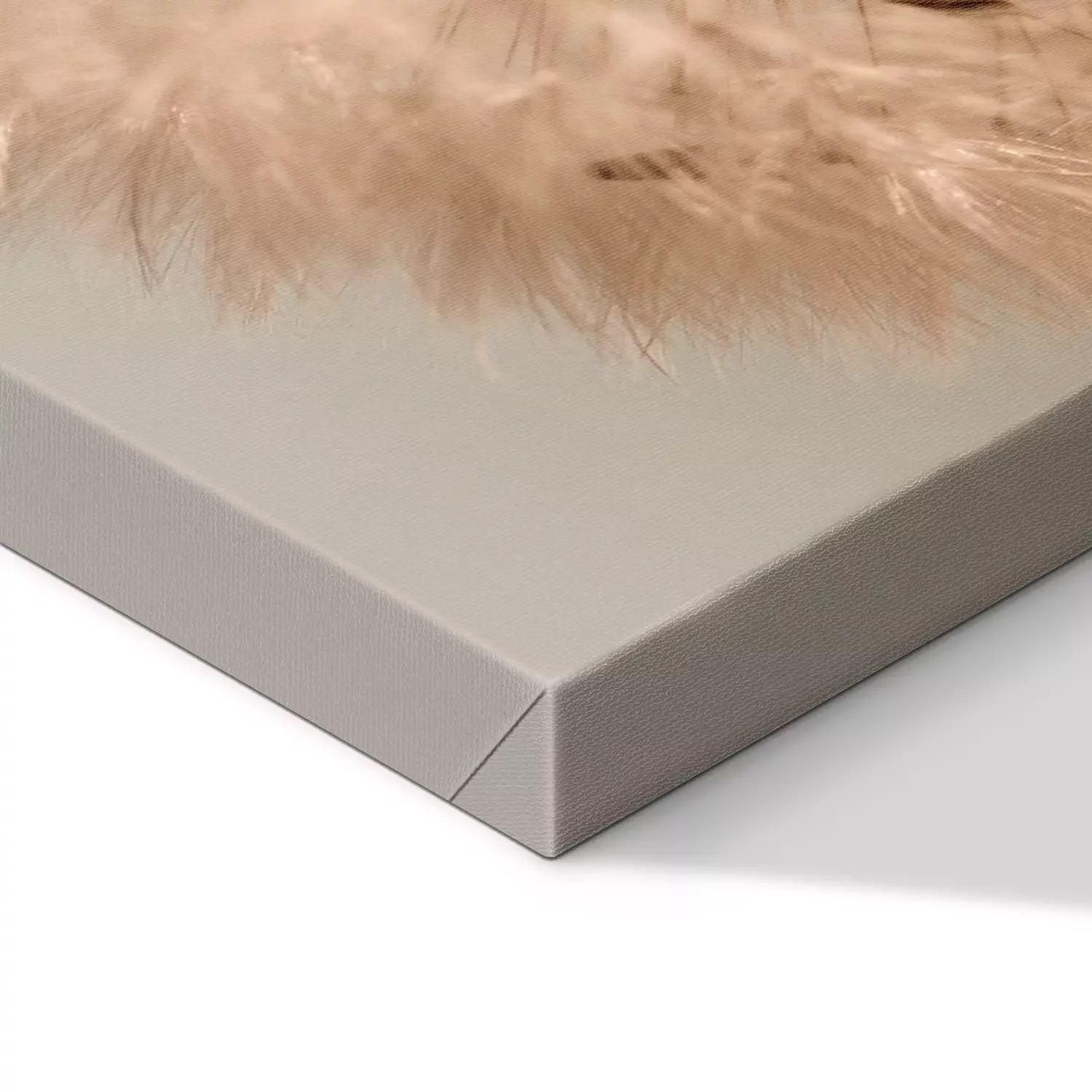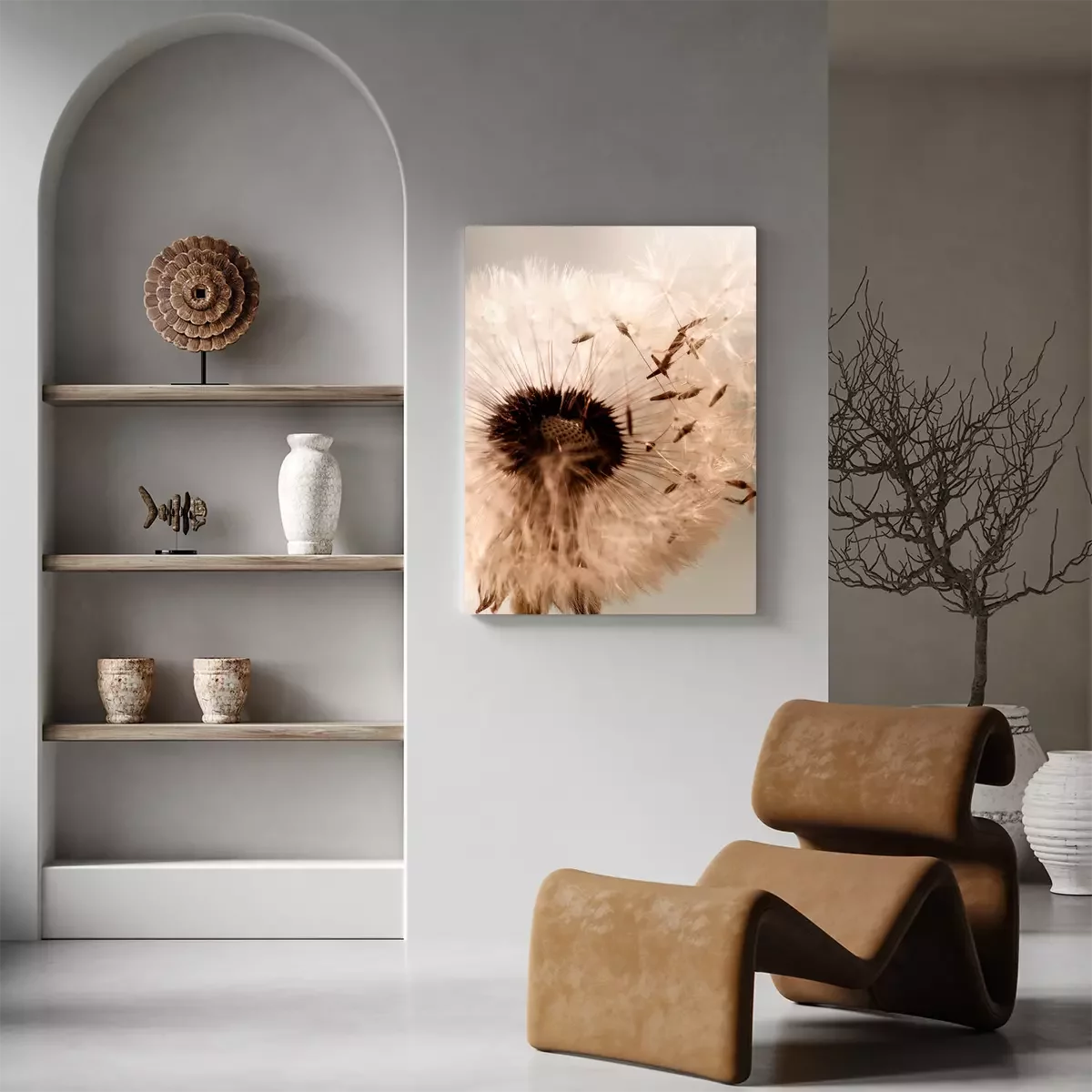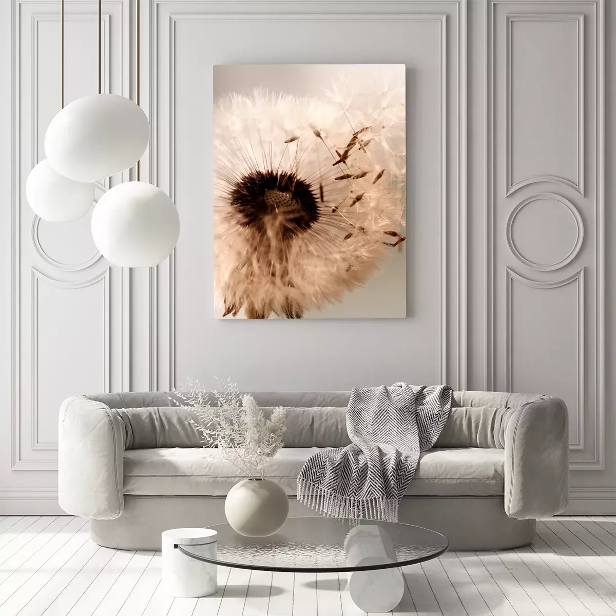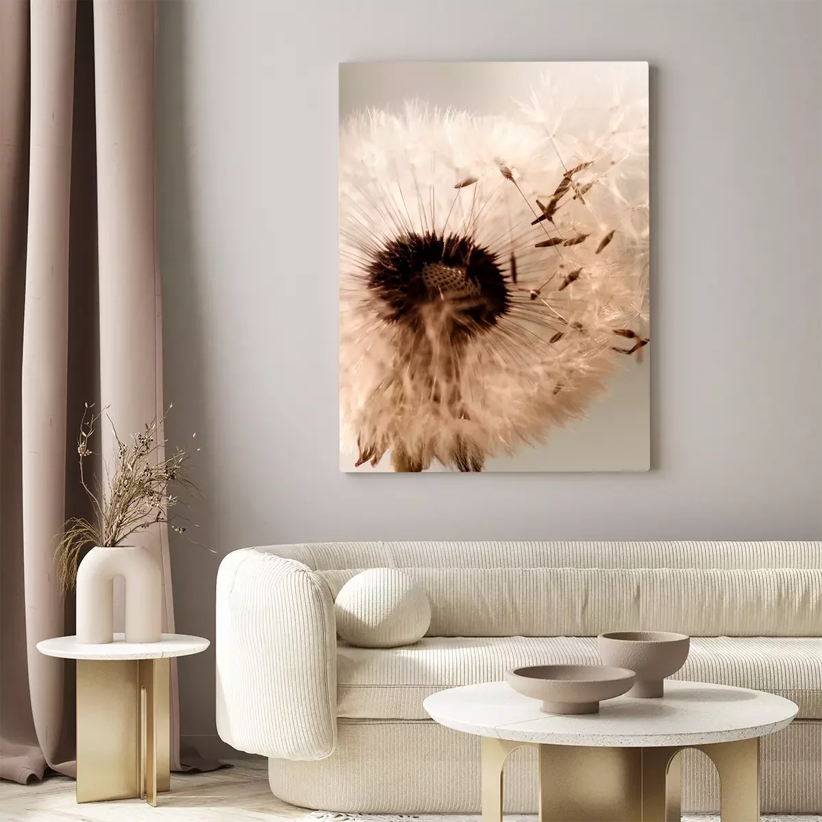 Beigefarbener löwenzahn mit samen vor dem himmel