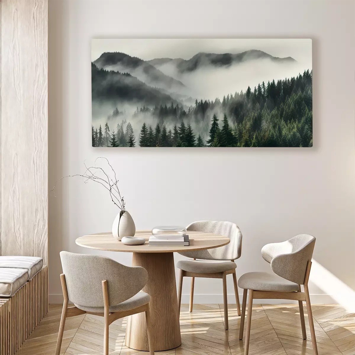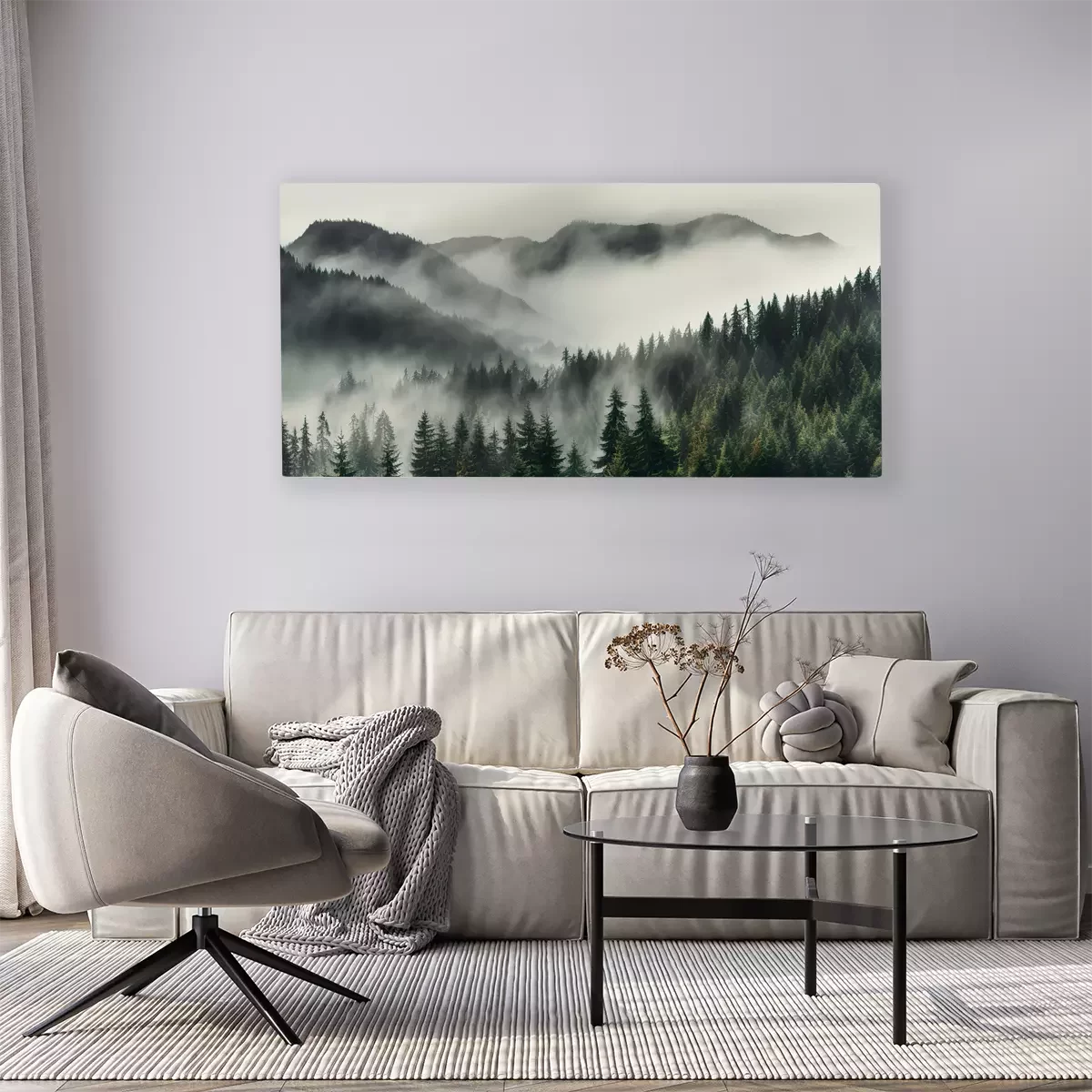 Bergkämme aus wald, in nebel gehüllt