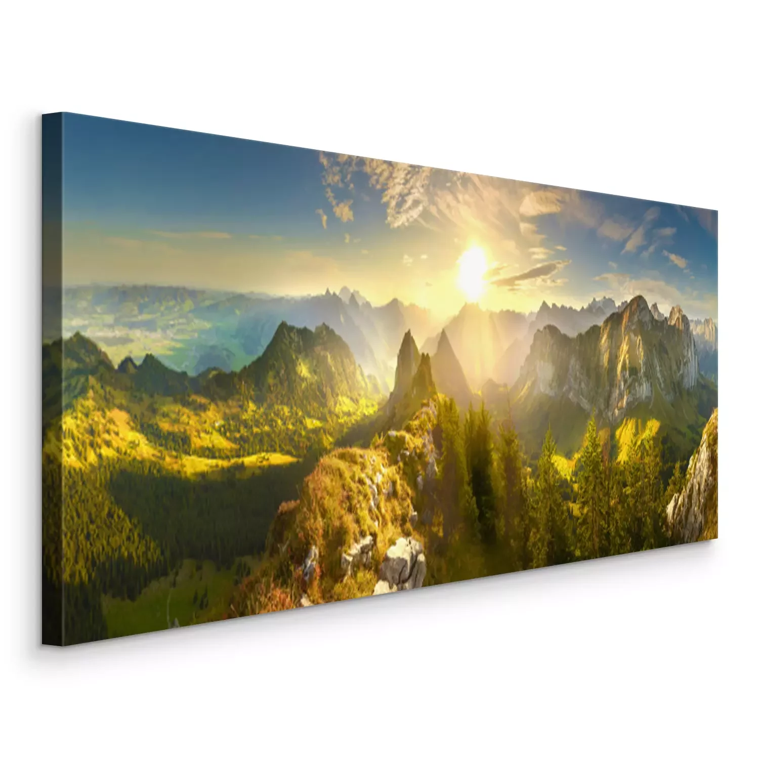 Bild Berglandschaft mit Wäldern und Sonnenaufgang